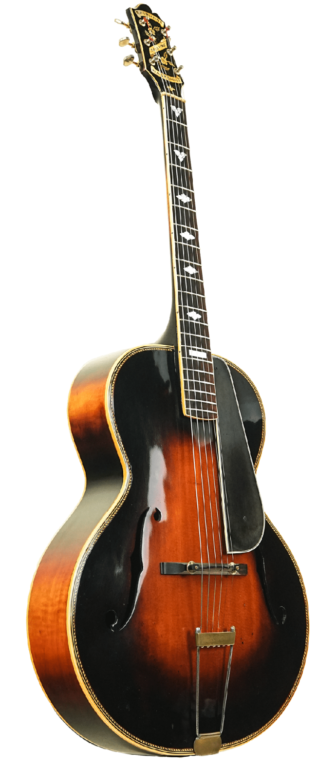 Geïntroduceerd als het topmodel binnen Epiphone, bedoeld om de strijd aan te gaan met Gibsons beste archtops. Dit exemplaar uit 1935, afkomstig uit The Dutch Archtop Guitar Museum, vertegenwoordigt de gouden jaren van de New York jazzgitaren: elegant, krachtig en doordrenkt van geschiedenis.