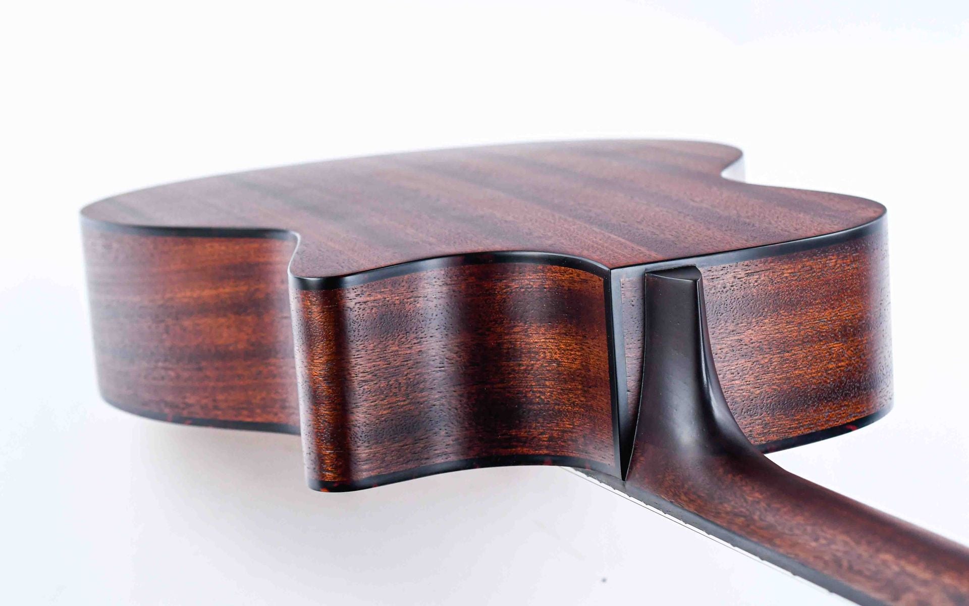 Diese linkshändige Eastman AC122 1CE lässt traditionelle Akustikgitarren hinter sich und bietet dem Spieler eine moderne Gitarre, bei der Komfort und Spielbarkeit an erster Stelle stehen. Der Grand Auditorium-Boden und die Zargen sind sehr bequem und der Cutaway ermöglicht den Zugriff auf alle Bünde, wodurch die Gitarre einen maximalen Klangumfang erhält. Der Hals hat eine zugängliche C-Form, die das Spielen des Instruments erleichtert. Der Korpus besteht aus Sapeli, was der Gitarre einen warmen und ausgewogenen Charakter verleiht.