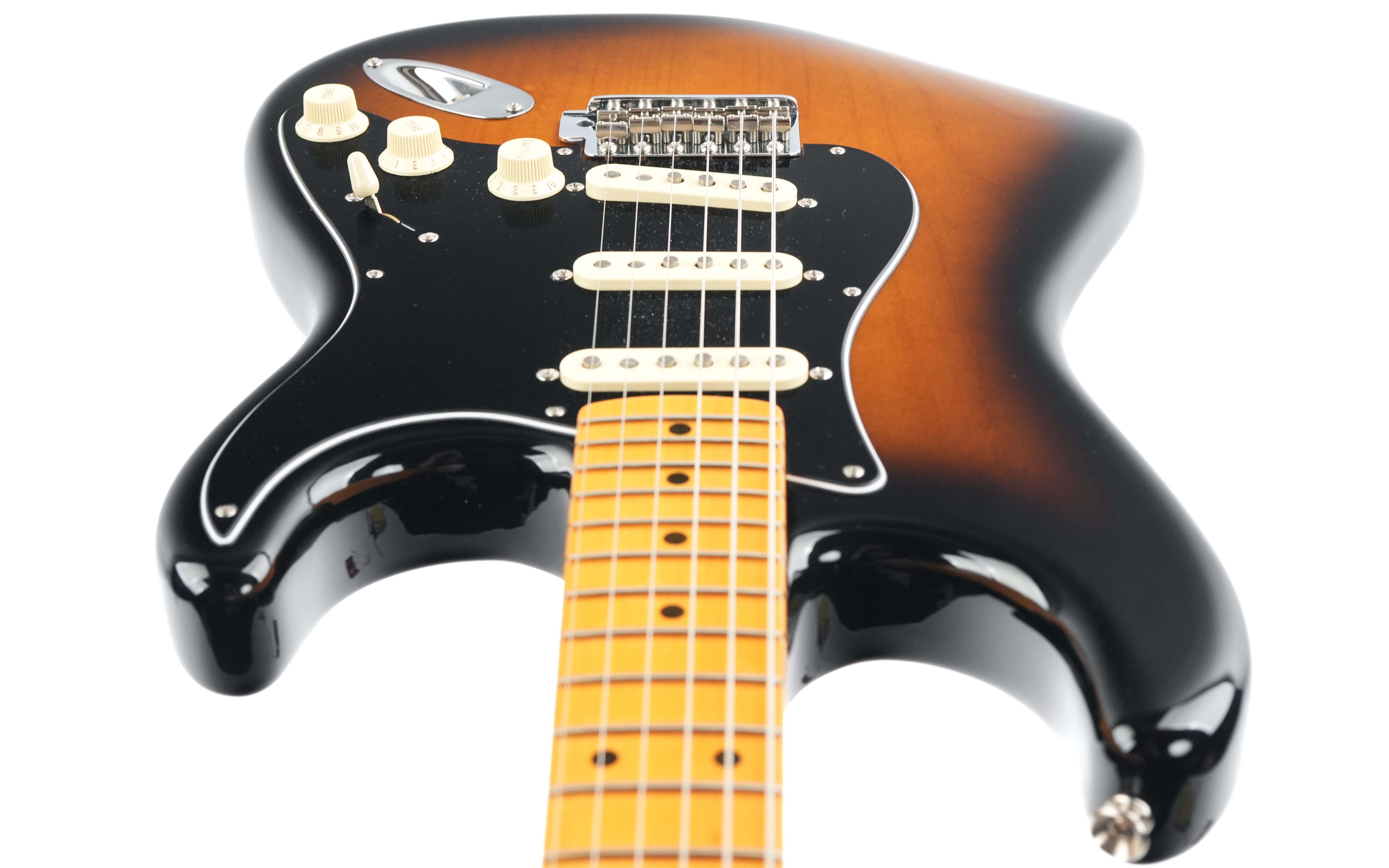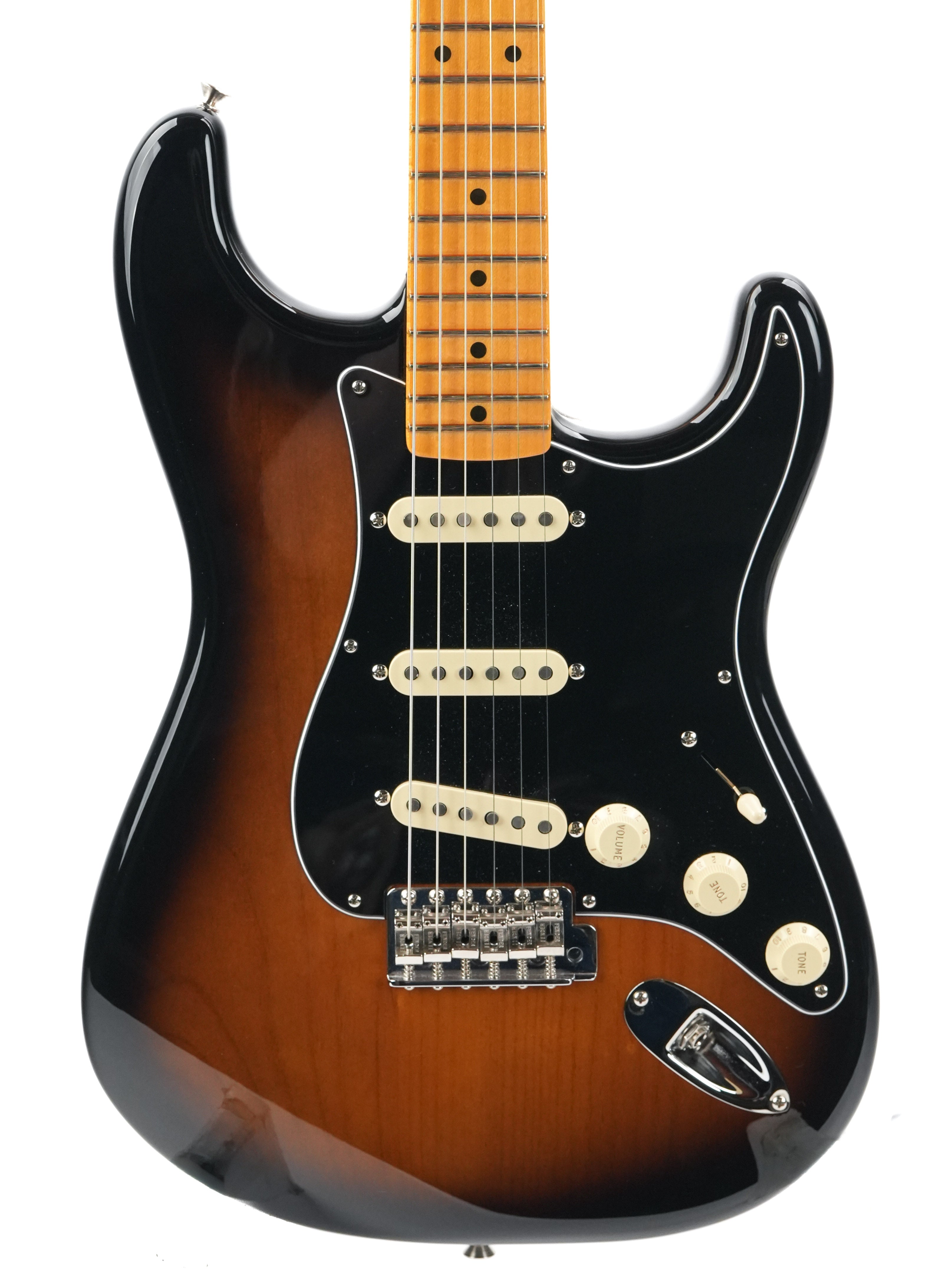 Diese Stratocaster aus dem Jahr 2024 ist in exzellentem Zustand. Die Gitarre weist Gebrauchsspuren auf der Rückseite des Korpus sowie einige kleine Dellen an der Seite auf. Das Schlagbrett wurde durch ein schwarzes ersetzt. Sie wird in einem Koffer mit TFOA-Pass geliefert.