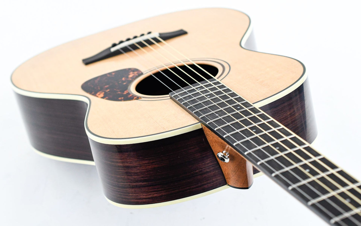 Wie alle Vintage-Modelle verfügt auch die Furch Vintage 1 OOM über eine massive Holzbauweise, die eine Sitka-Fichtendecke und Rückseite sowie Seiten aus indischem Palisander kombiniert, um einen reich ausgewogenen Klang zu erzeugen.