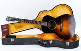 Die Gibson L00 wurde 1929 eingeführt, erschien aber erst 1932 im Katalog. Das Modell L00 war während der Großen Depression dank seines niedrigen Preises und seines großartigen Klangs ein großer Erfolg. Die L00 ist eine der begehrtesten kleinen Akustikgitarren von Gibson und damit eine echte "Spielergitarre". Die L00 hat die typischen, unaufdringlichen Gibson-Merkmale wie Mahagoni-Boden und -Zargen und eine Fichtendecke mit Sonnenschliff, die mit einem Schlagbrett im Feuerstreifen versehen ist. Der Mahagoni-Hals hat ein massives V-Profil und ist mit einem Palisander-Griffbrett ausgestattet.