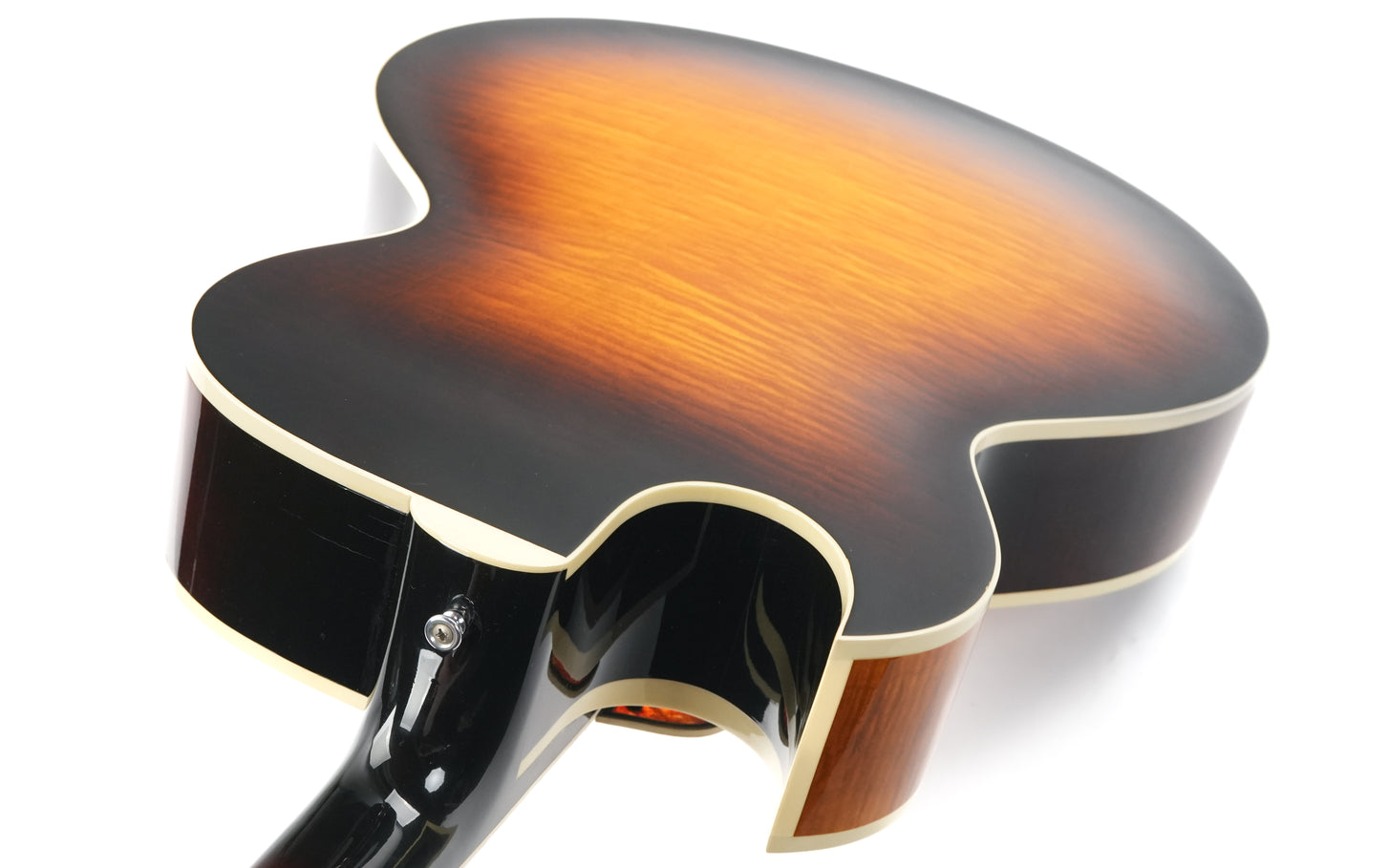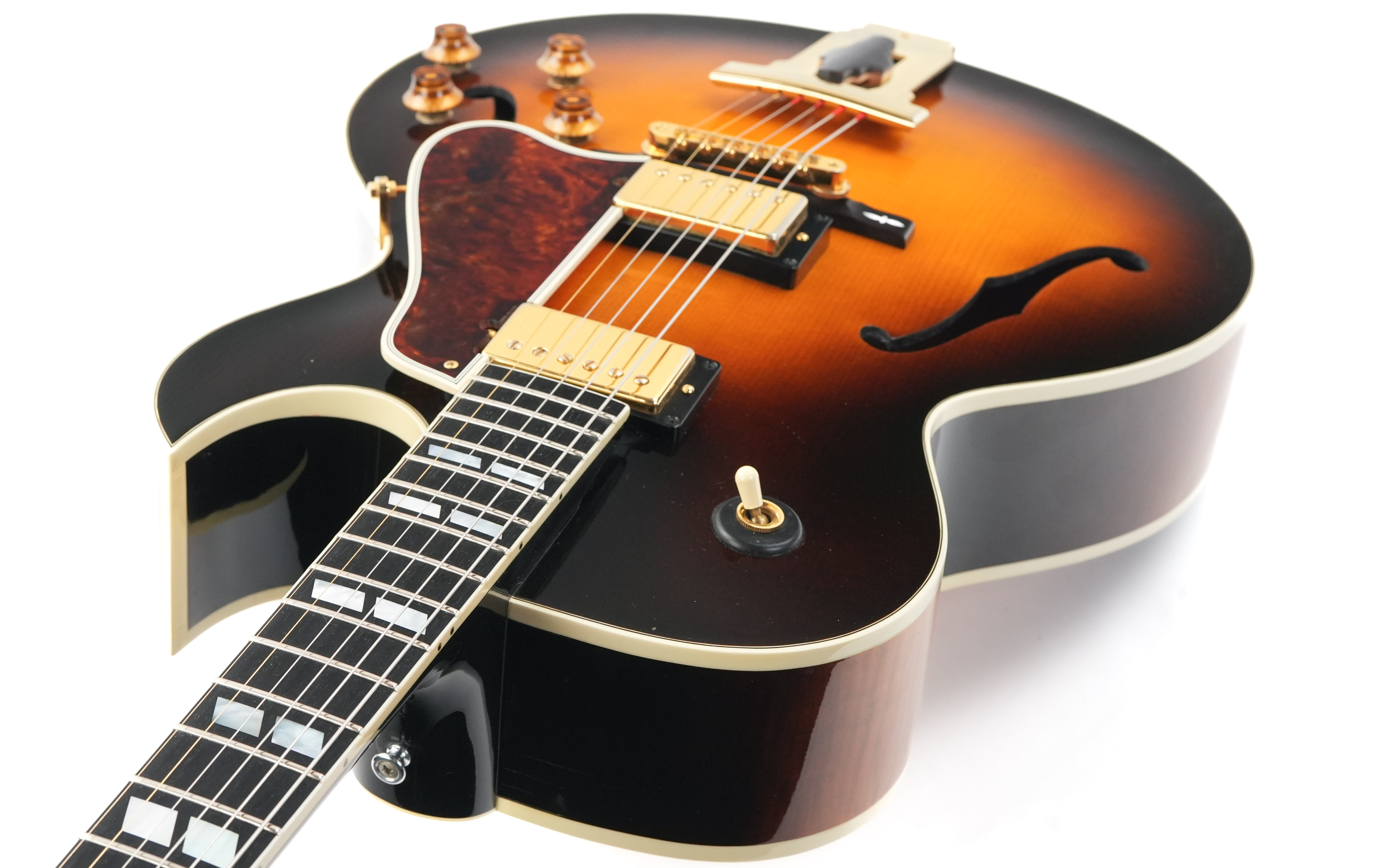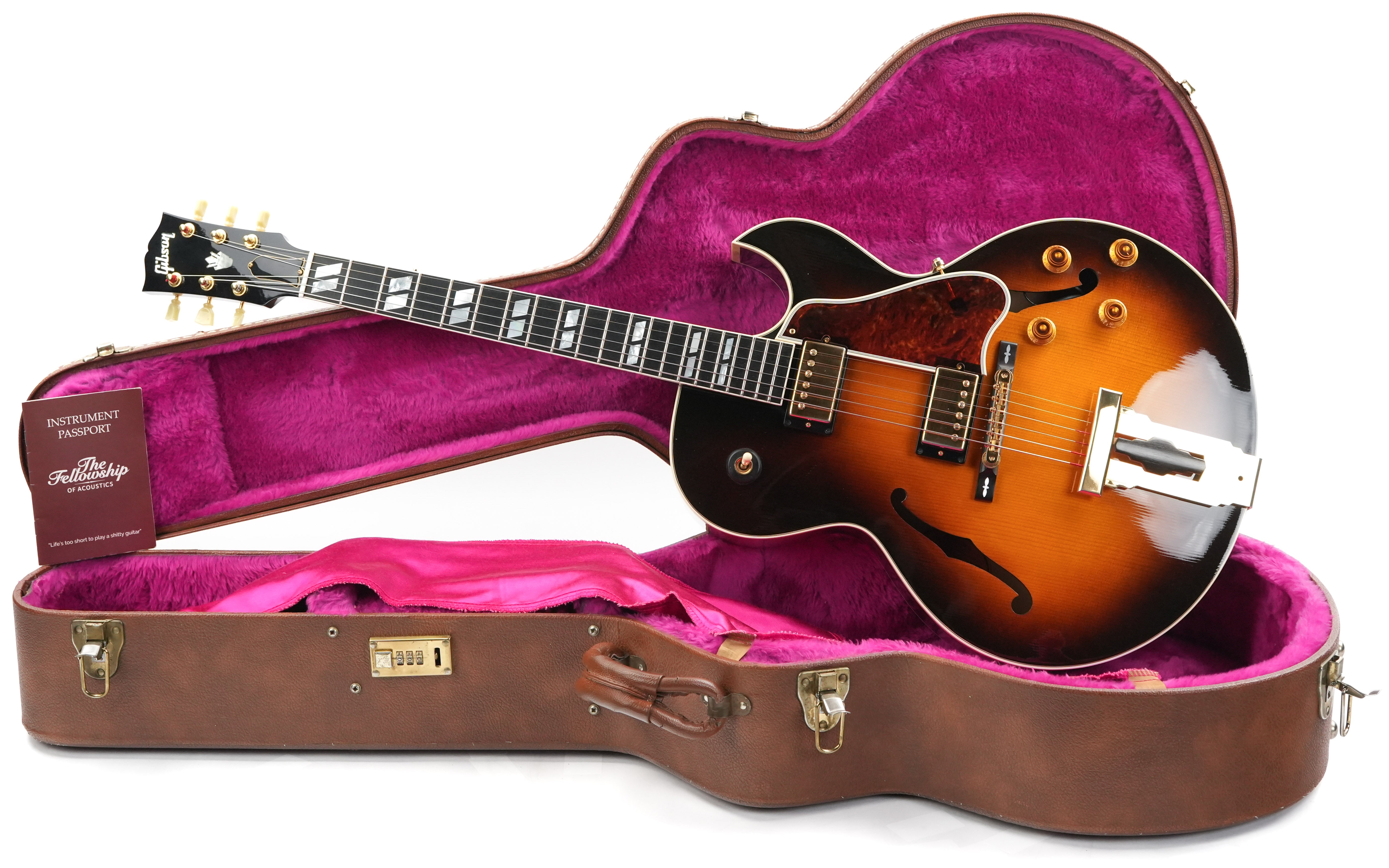Die Gibson L4 CES von 1997 ist eine elegante Archtop-Gitarre, die mühelos Eleganz und Vielseitigkeit vereint. Mit ihrem Korpus aus geflammtem Ahorn, der massiven Fichtendecke und den 57 Classic Humbuckern liefert diese Hollowbody-Gitarre den wunderschönen, warmen Jazz-Sound, den man von einer echten Gibson erwartet!Die L4 CES blickt auf eine lange Geschichte zurück, die bis in die 1930er-Jahre reicht, als Gibson diese Serie als Premium-Archtop-Linie einführte. „CES“ steht für „Cutaway Electric Spanish“ und ist Gibsons Antwort auf die wachsende Nachfrage nach elektrischen Archtops, die sowohl akustisch als auch verstärkt gespielt werden können. Im Laufe der Jahre haben unzählige Jazzlegenden und Rockgitarristen die L4 CES aufgrund ihrer einzigartigen Kombination aus Resonanz und elektrischen Klangeigenschaften geschätzt.Dieses Modell von 1997 verkörpert alles, wofür Gibson in puncto Handwerkskunst und Liebe zum Detail bekannt ist. Der Korpus aus geflammtem Ahorn sorgt für einen lebendigen, differenzierten Klang, während die massive Fichtendecke die perfekte Balance zwischen Wärme und Klarheit bietet. Die halbakustische Bauweise verleiht der Gitarre eine natürliche Resonanz, die sowohl akustisch als auch elektrisch spürbar ist, mit jenem charakteristischen, holzigen Unterton, den nur eine echte Archtop liefern kann.Die 57 Classic Humbucker wurden sorgfältig ausgewählt, um das Beste aus dieser Gitarre herauszuholen. Sie bieten den klassischen, PAF-inspirierten Sound mit genügend Output für Rock, bewahren aber gleichzeitig die Klarheit und Definition, die für Jazz und Blues unerlässlich sind. Der Ahornhals im C-Profil liegt angenehm in der Hand, während das Ebenholzgriffbrett mit Perlmutt-Inlays für ein ebenso luxuriöses Spielgefühl sorgt, wie es aussieht.Die Gitarre weist leichte Gebrauchsspuren am Schlagbrett und an der Decke sowie einige kleine Dellen in der Nähe der Regler auf. Auch auf der Rückseite des Korpus sind leichte Gebrauchsspuren zu erkennen, und an der Schulter auf der Bassseite befindet sich ein paar Risse im Lack. Die goldfarbene Hardware ist stellenweise leicht verfärbt, aber die Gitarre sieht insgesamt sehr gepflegt aus!Inklusive TFOA-Pass und Koffer.