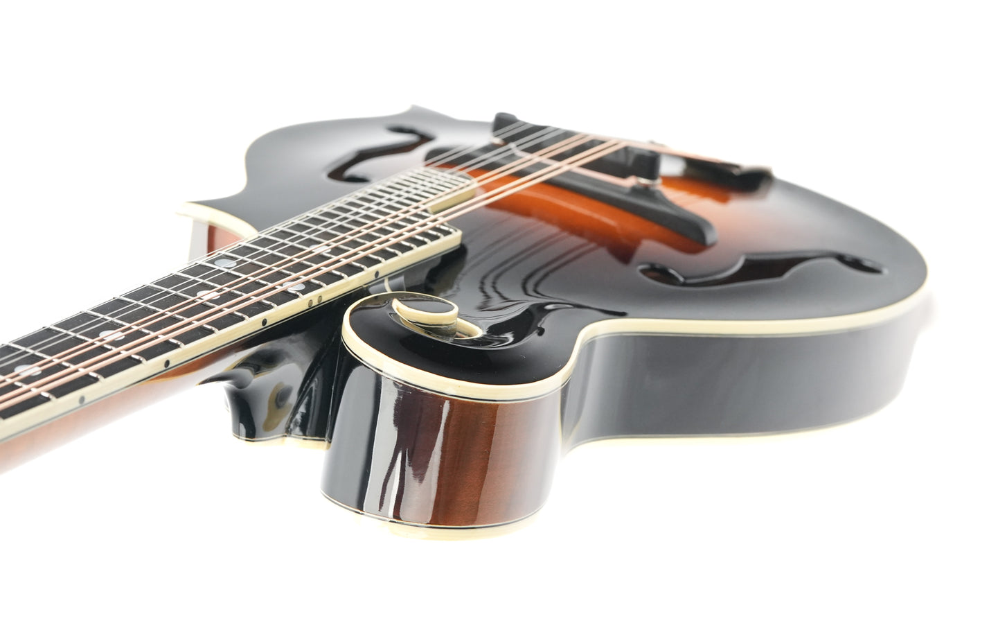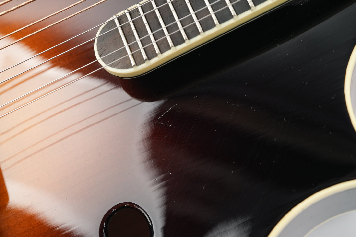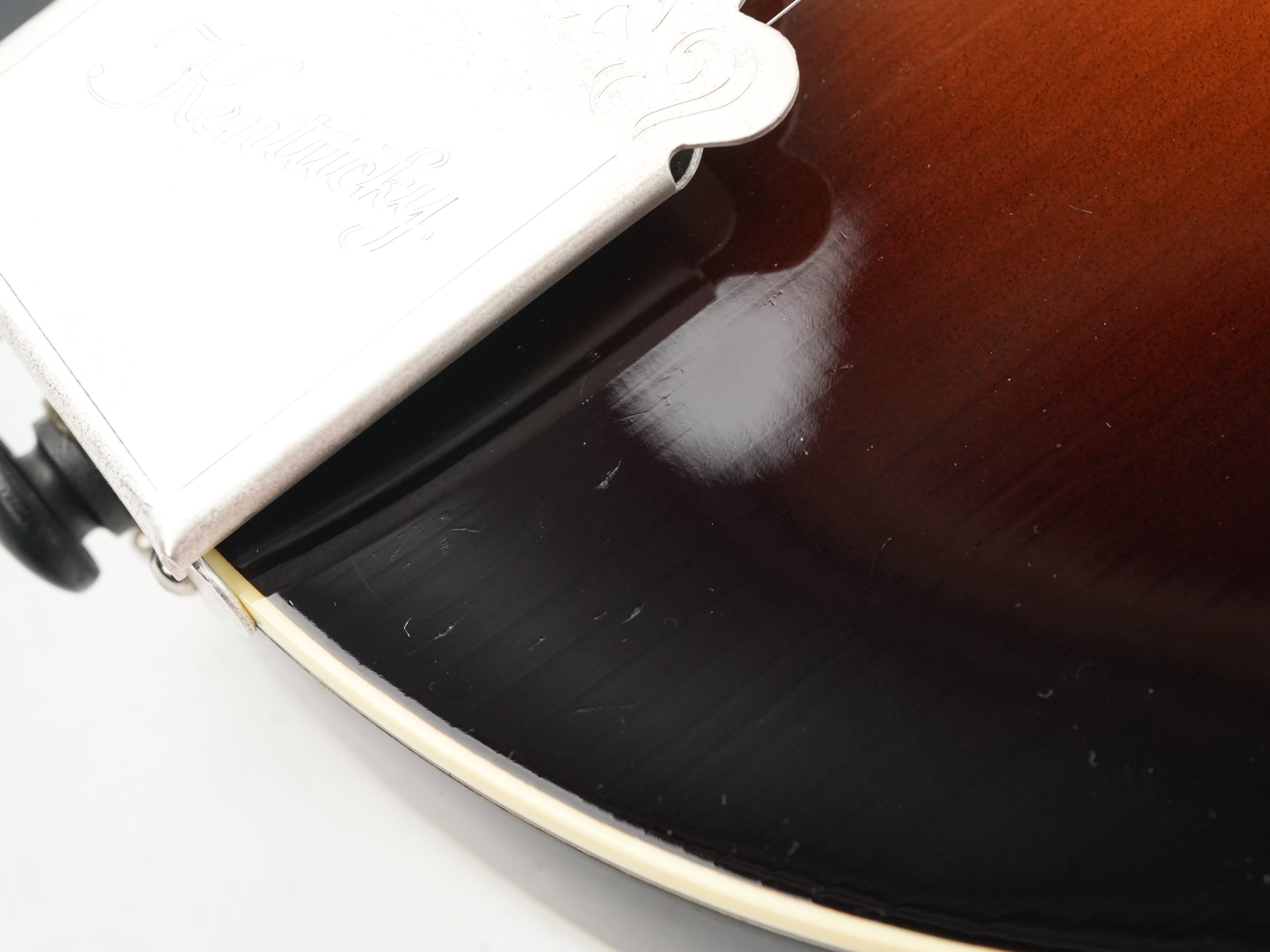 Das Kentucky KM1000 Master Model macht den legendären F-Style-Mandolinenklang der 1920er-Jahre für moderne Spieler zugänglich. Mit ihrer handgeschnitzten Decke aus Adirondack-Fichte, dem geflammten Ahornboden und dem Ebenholzsteg im Vorkriegsstil liefert diese Mandoline authentische Bluegrass-Klänge, die Sie direkt in die goldene Ära der amerikanischen Folk- und Country-Musik zurückversetzen.Die KM1000 wurde Ende der 1970er-Jahre als Kentuckys Antwort auf die Nachfrage von Spielern und Sammlern nach einer erschwinglichen Mandoline eingeführt, die in Qualität und Klang mit Vintage-Instrumenten des frühen 20. Jahrhunderts mithalten konnte. Das F-Style-Design mit seiner charakteristischen Schnecke und dem spitz zulaufenden Korpus wurde ursprünglich von legendären Mandolinenbauern populär gemacht und prägte den Klang von Bluegrass und amerikanischer Folkmusik. Kentucky gelang es, diese zeitlose Ästhetik und diesen Klangcharakter ohne die astronomischen Preise echter Vintage-Exemplare zu reproduzieren.Mit der KM1000 vereint Kentucky traditionelle Handwerkskunst mit moderner Zuverlässigkeit. Die handgeschnitzte Decke aus Adirondack-Fichte mit ihrer wunderschönen Wölbung sorgt für den klaren, durchsetzungsstarken Klang, der Mandolinen im F-Stil so geeignet für rhythmische Läufe und ausdrucksstarke Melodielinien macht. Boden und Zargen aus geflammtem Ahorn verleihen dem Klang Wärme und Sustain, während das V-förmige Halsprofil, das Ebenholzgriffbrett und der Perlmuttsattel das authentische Spielgefühl von Vintage-Instrumenten gewährleisten.Diese KM1000 aus dem Jahr 2014 weist Spielspuren und kleine Dellen, hauptsächlich auf der Decke, auf; auch am Boden des Korpus sind Gebrauchsspuren zu erkennen. Insgesamt macht die Mandoline jedoch einen gepflegten Eindruck und bietet mit ihren hochwertigen Materialien und der exzellenten Verarbeitung ein hervorragendes Preis-Leistungs-Verhältnis. Diese Kentucky-Mandoline kann es problemlos mit deutlich teureren Instrumenten aufnehmen!