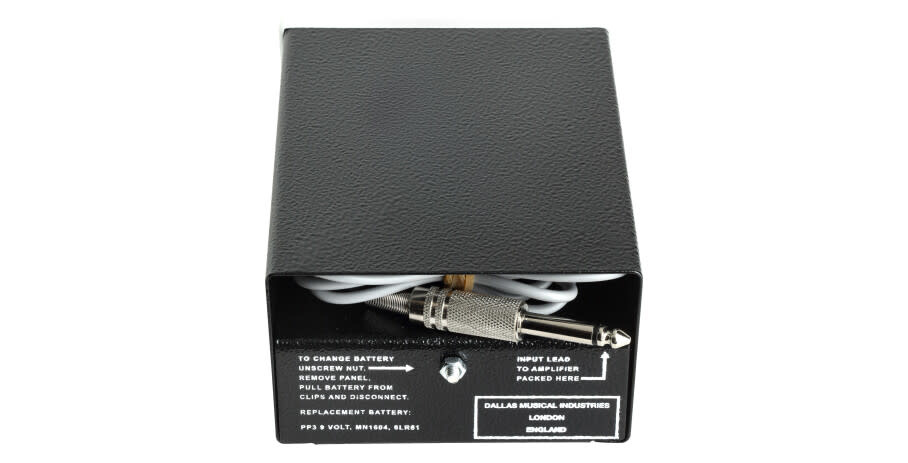 The new Dallas Rangemaster Varitone features a specially produced OC75 Transistor, hand selected for its optimum performance over the tonal spectrum. The housing of this limited edition is finished in black.