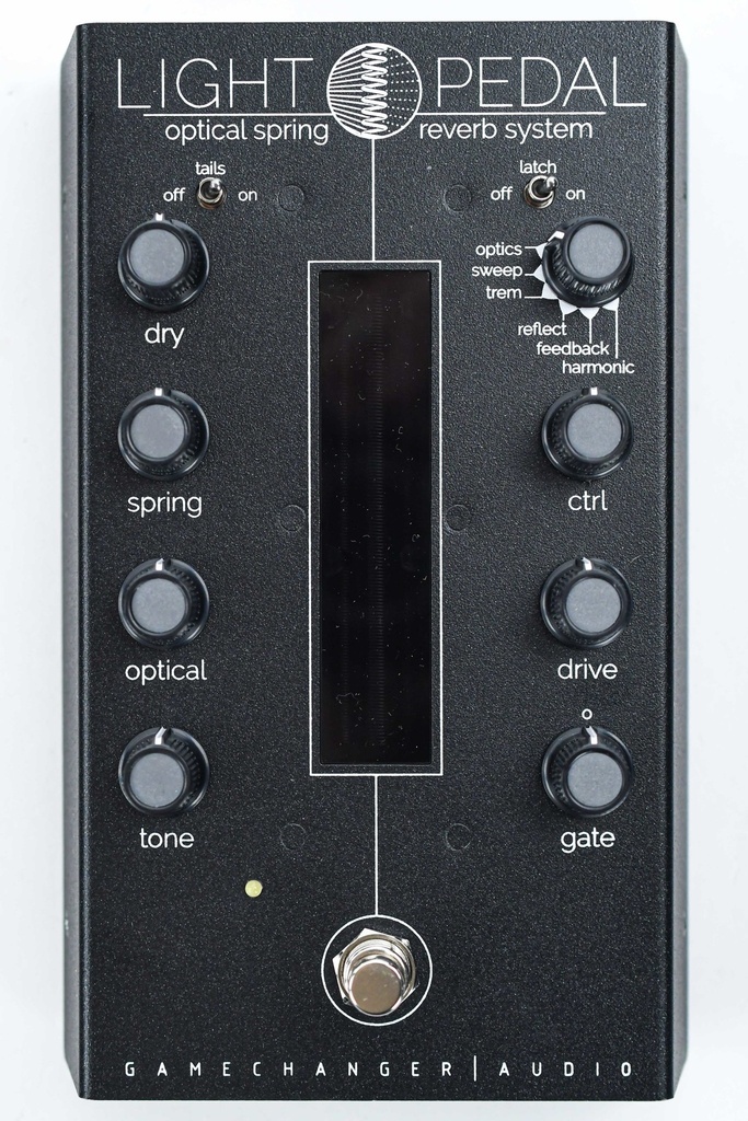 Light Pedal is 's werelds eerste analoge optische spring reverb systeem dat infrarood optische sensoren gebruikt om het volledige timbrale en harmonische bereik van een 'spring reverb tank' te benutten.
