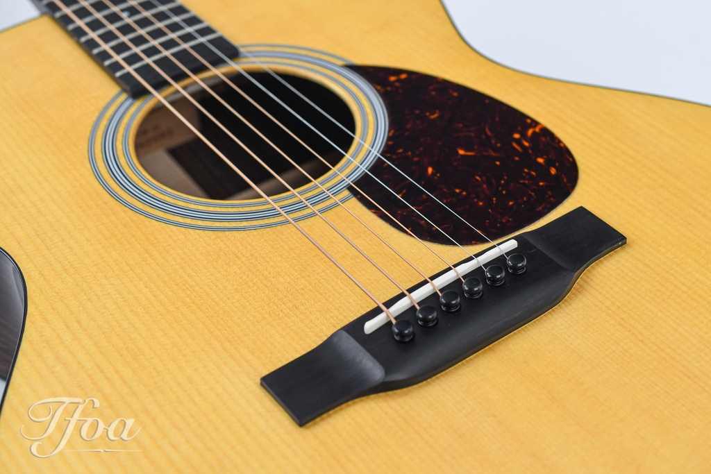 The OM-21 is part of the Martin Standard line-up and an iconic model for Martin. This keeps the build faithful to one of the guitar's earlier designs. It has an ebony bridge and fingerboard, scalloped X bracing, and the neck is 44.5mm or 1 3/4 "wide. The OM-21 is a comfortable guitar for those who don't want a big body, but want a big sound.