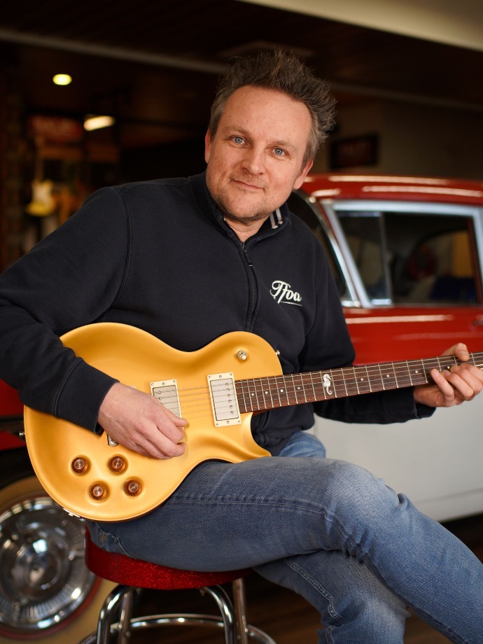 Tom is the Fellow with a wealth of experience in his pocket, as he had quite a career before he went after his dream. He once studied at the Conservatory and then earned his money as a work planner, among other things. Until that one job came along in that Guitar Villa where he sometimes did his shopping. Now or never, Tom thought and left Dordrecht for Dedemsvaart.