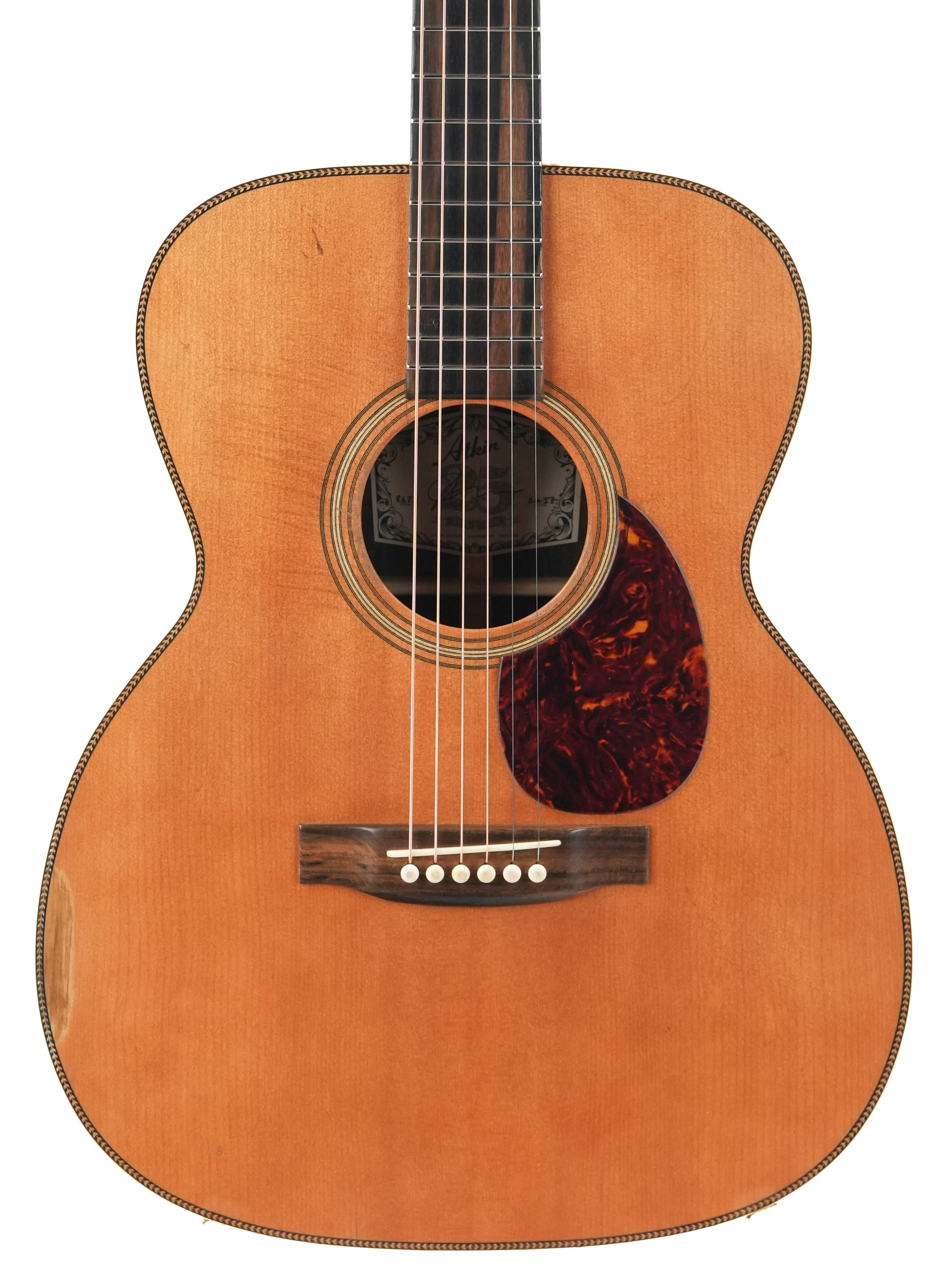 Waar Atkin al geruime tijd bewijst dat het merk als geen ander een gitaar kan bouwen, is het aging-proces misschien wel het meest indrukwekkende aspect van Atkin Guitars.Atkin gaat nog een stapje verder met de 'heavy aging'-afwerking met deze OM37. Bovendien laat deze OM37 zien dat hij is geïnspireerd door een 'andere' vintage gitaar dan de standaard Atkin. Het bovenblad vertoont lichte verkleuringen en is van nature gemarkeerd door de verschillende sporen.De essentie van deze OM37 is de palissander achterkant en zijkanten, gecombineerd met een gebakken Sitka bovenblad en ondersteund met handgeschulpte versteviging. De mahoniehouten hals heeft een palissander toets met old school short pattern Diamond & Squares inlay en palissander headstock overlay, en tot slot de buitensporige toon en perfect verouderde afwerking die je direct doen denken aan een Martin uit de jaren '40.Deze Atkin uit 2023 verkeert met slechts minimale speelsporen in excellente conditie, en wordt met TFOA paspoort geleverd in een TKL-koffer.