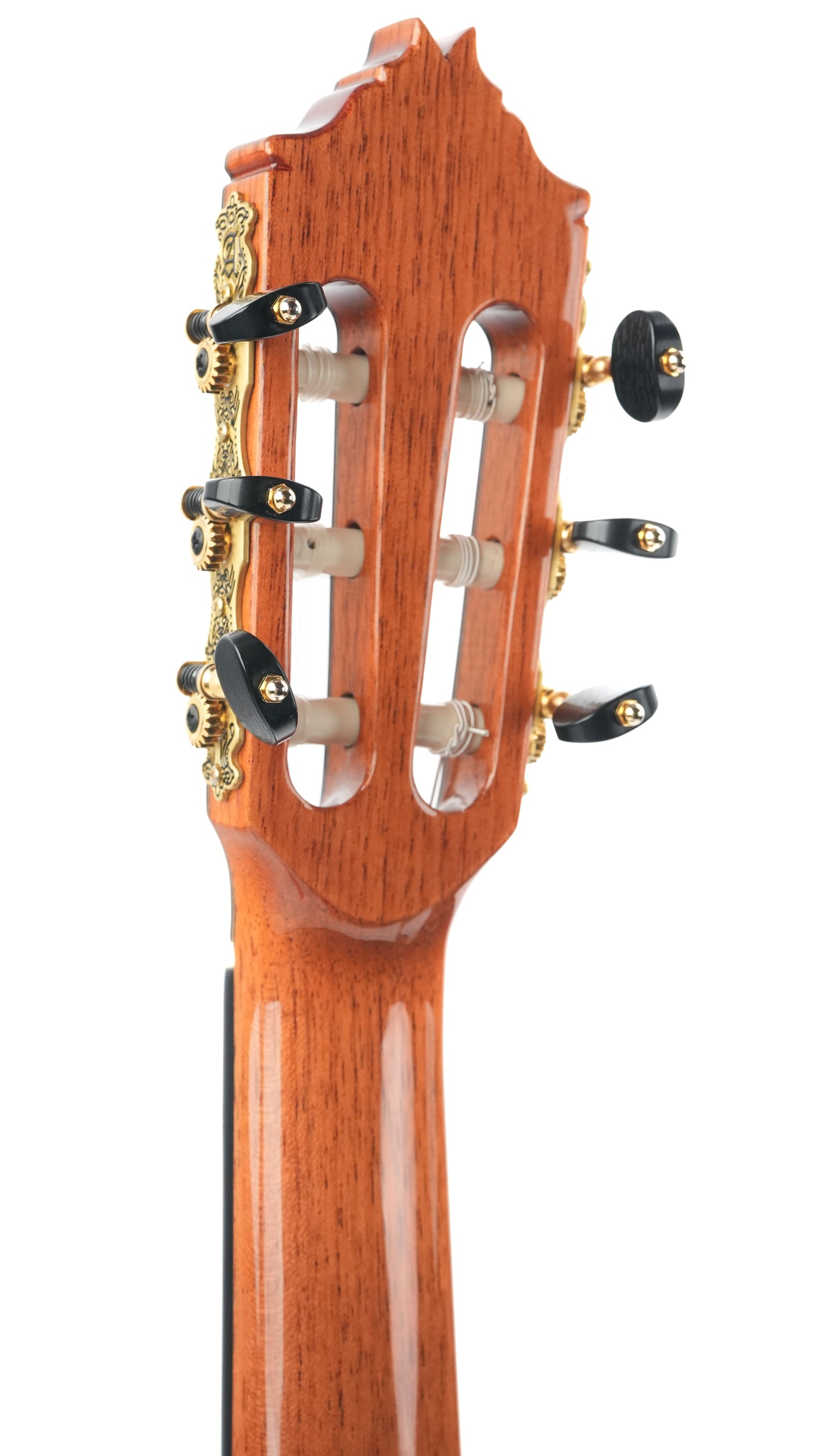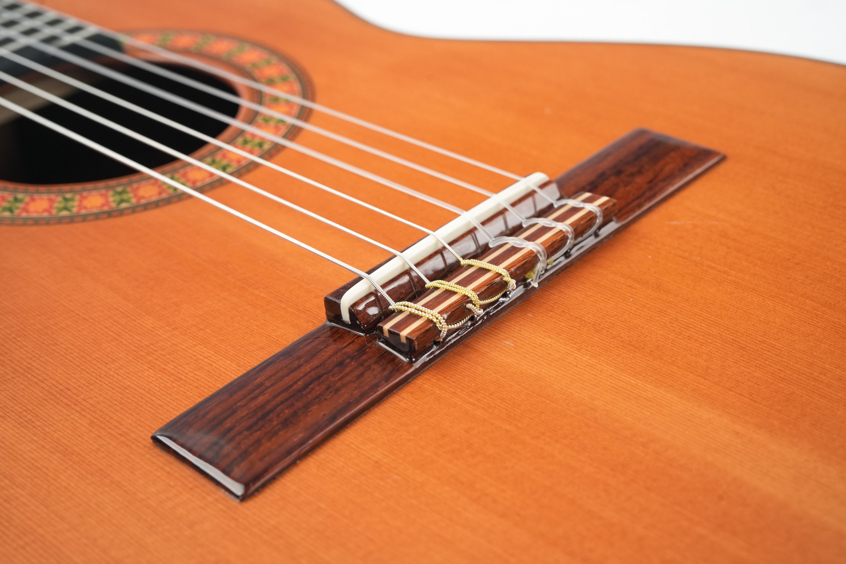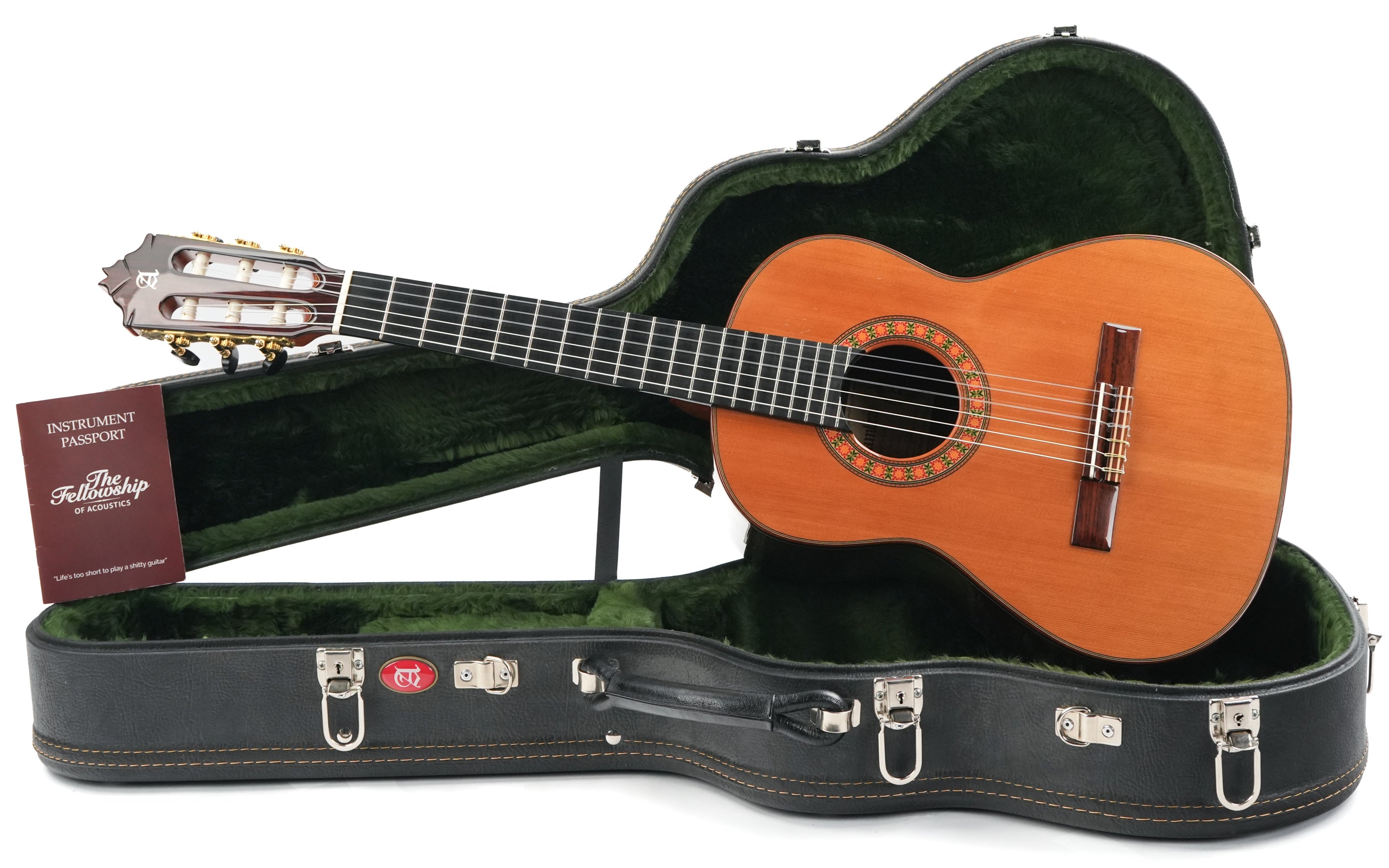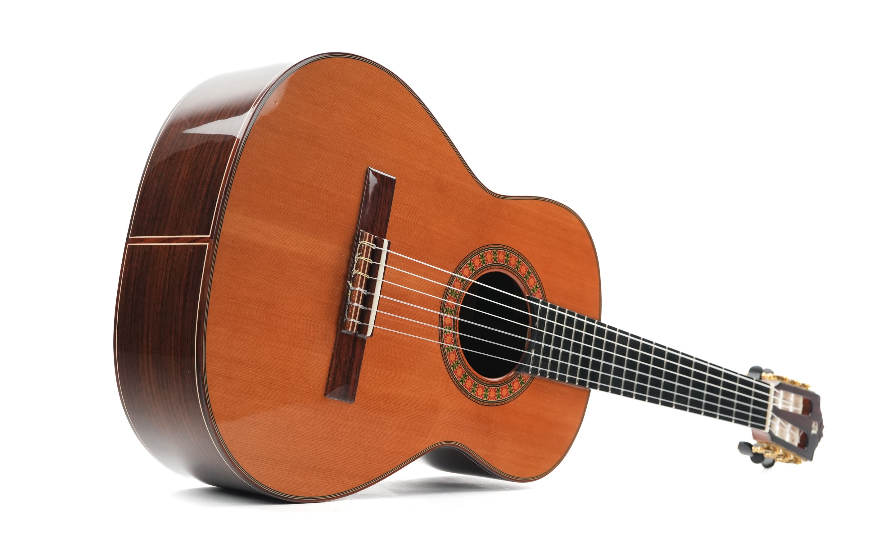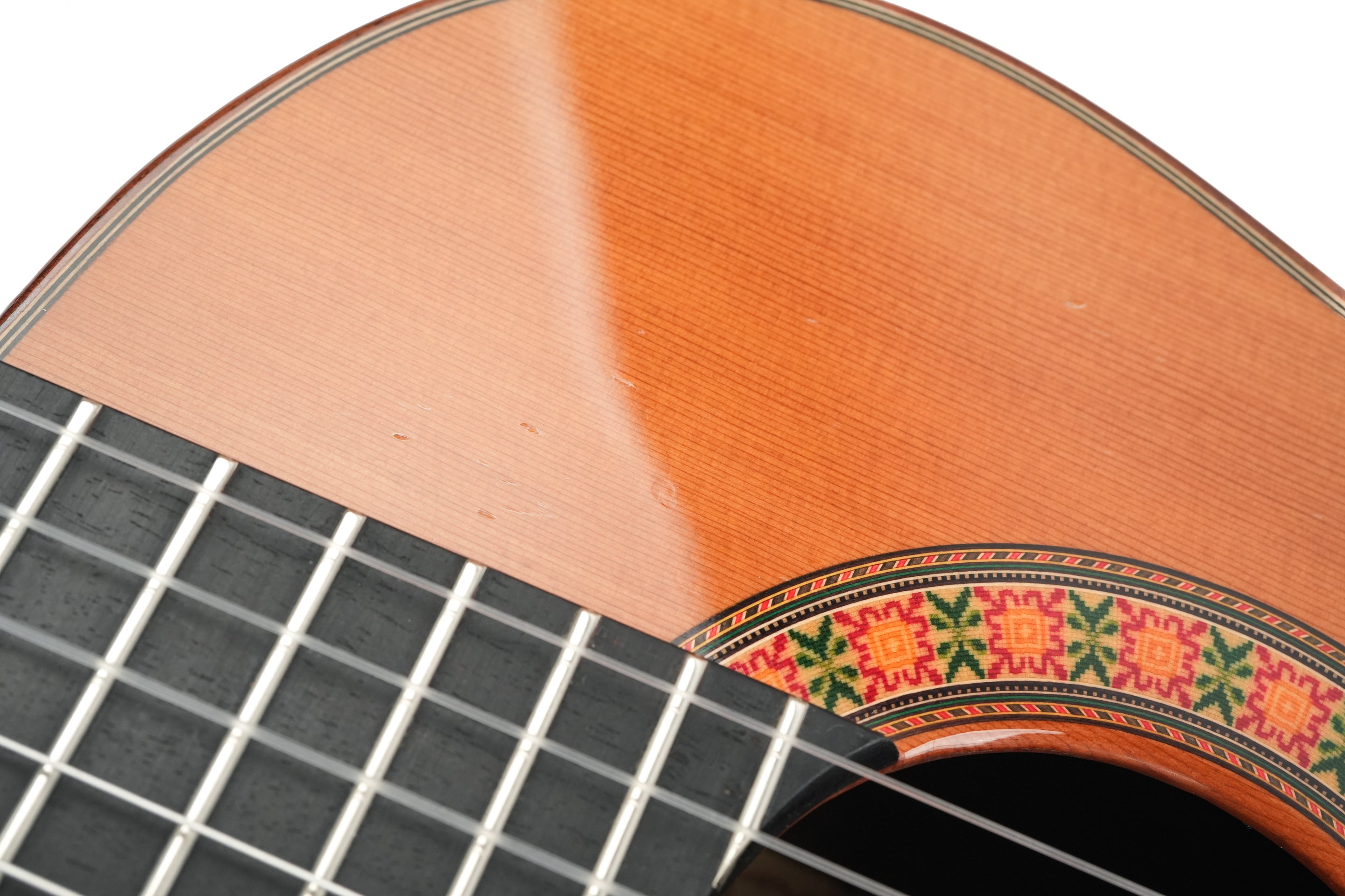 The Alhambra R9P 1/2 Size is a smaller-sized guitar and is a Requinto model. These guitars are tuned higher than regular guitars and feature a deeper body than regular 1/2 Size guitars, producing a high volume. They are excellently suited as accompaniment instruments and are used in Trío romántico groups in Latin music.But the richness of the sound is not the only top quality of this guitar: the action is also sublime; high enough to make the guitar sing, yet extremely comfortable. And the sound projection is perfect: basses, midtones, and trebles are fully balanced thanks to the Indian rosewood body with a cedar top.This 2024 Alhambra is in very good condition. The bridge has been re-glued, and there are minor lacquer imperfections visible on the side of the neck resulting from improvised position markers. Furthermore, we find several small dings on the top, along with some light buckle wear on the back of the body.The guitar comes with a TFOA passport in a hardshell case.
