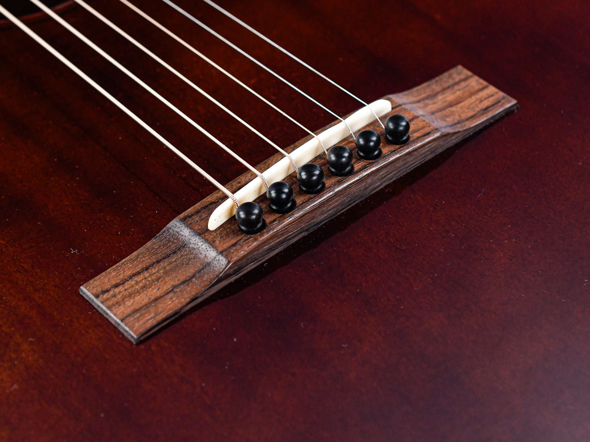 Inspired by the depression era guitars of the 1930s, the Dust Bowl Series consists of guitars made entirely of mahogany, complemented by a fingerboard of Indian rosewood. The guitars have a lightweight construction and have a wonderfully comfortable playability.