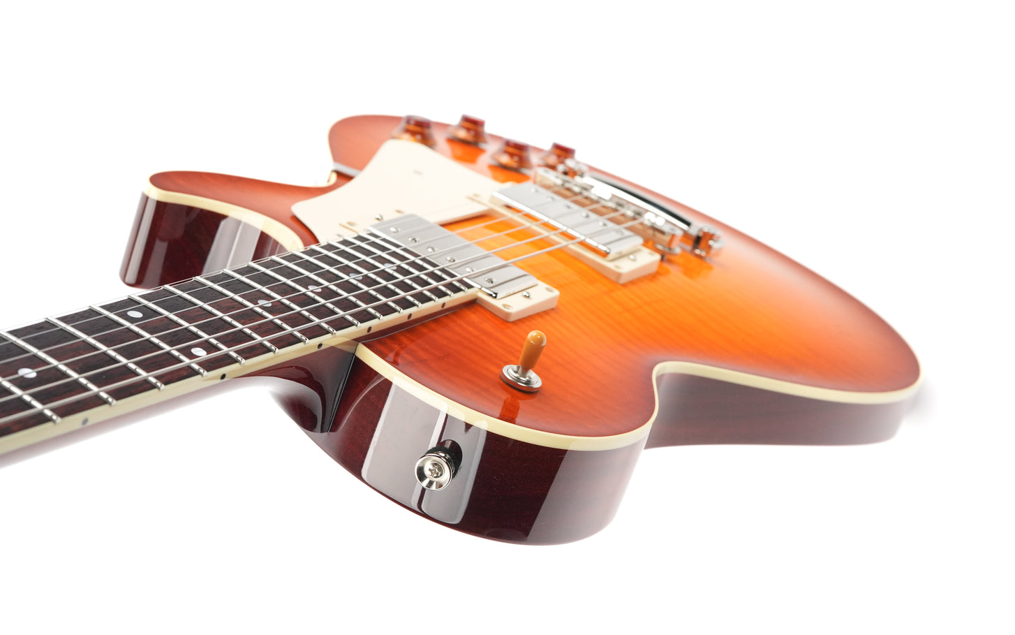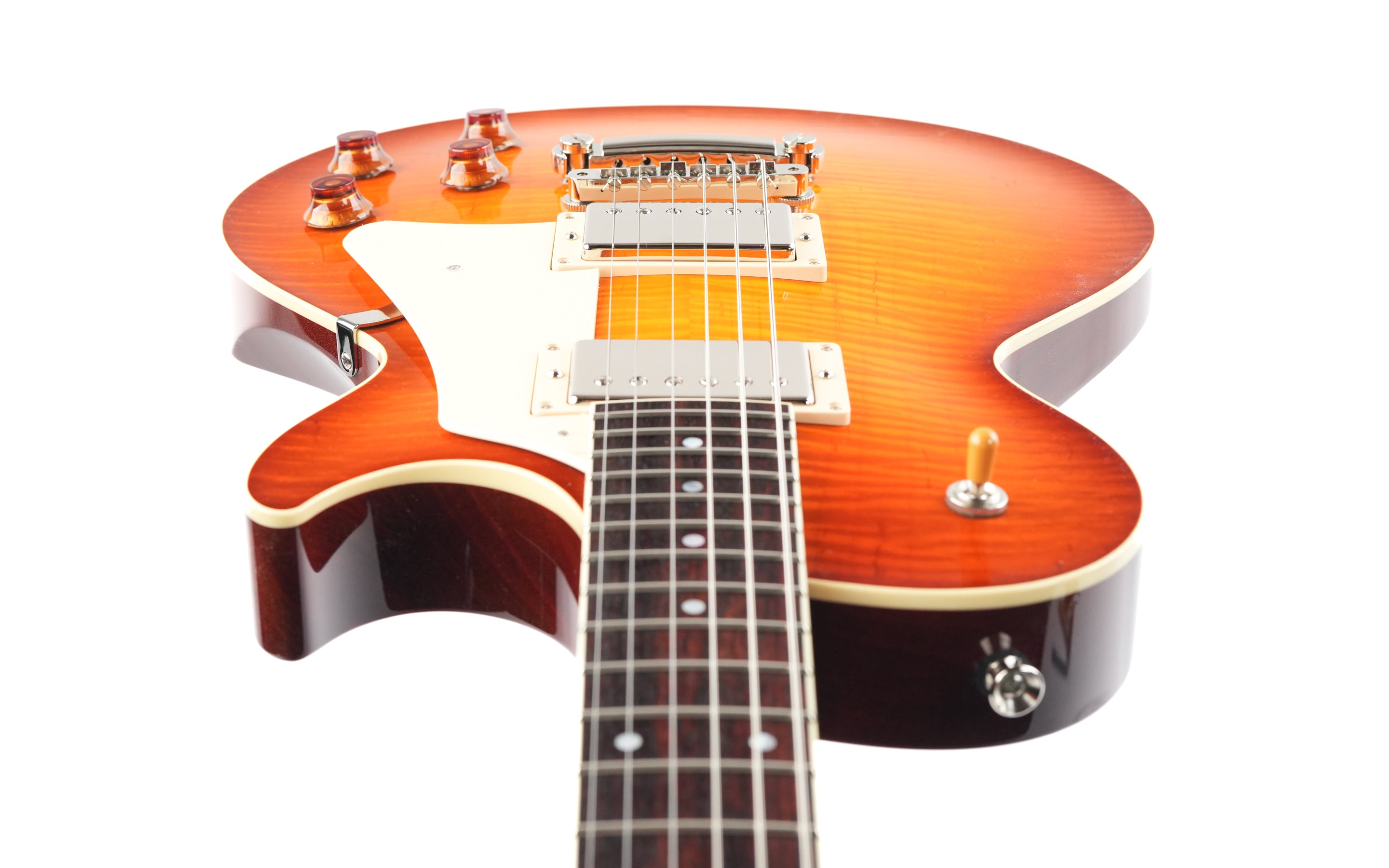 The Collings CL is a masterfully built instrument that perfectly balances refined craftsmanship with exceptional tone. Its striking chevron flame maple top immediately catches the eye, while also contributing to the clarity and richness of its voice. Combined with a lightweight Honduran mahogany body, this guitar offers outstanding resonance, sustain and a lively, responsive feel.
