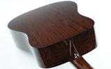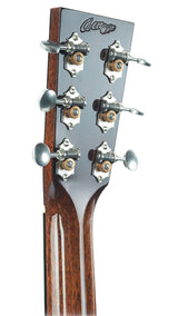 This guitar is built with an Adirondack spruce top and Honuduran mahogany back and sides, providing a rich tonal spectrum with plenty of dynamics. The body is finished with tortoiseshell binding and a carefully hand-cast pickguard, rosette, and heel cap, underscoring the visual character of the Hill Country series. The ebony fingerboard features elegant mother-of-pearl dot inlays, and has a compound radius for optimum playing comfort.