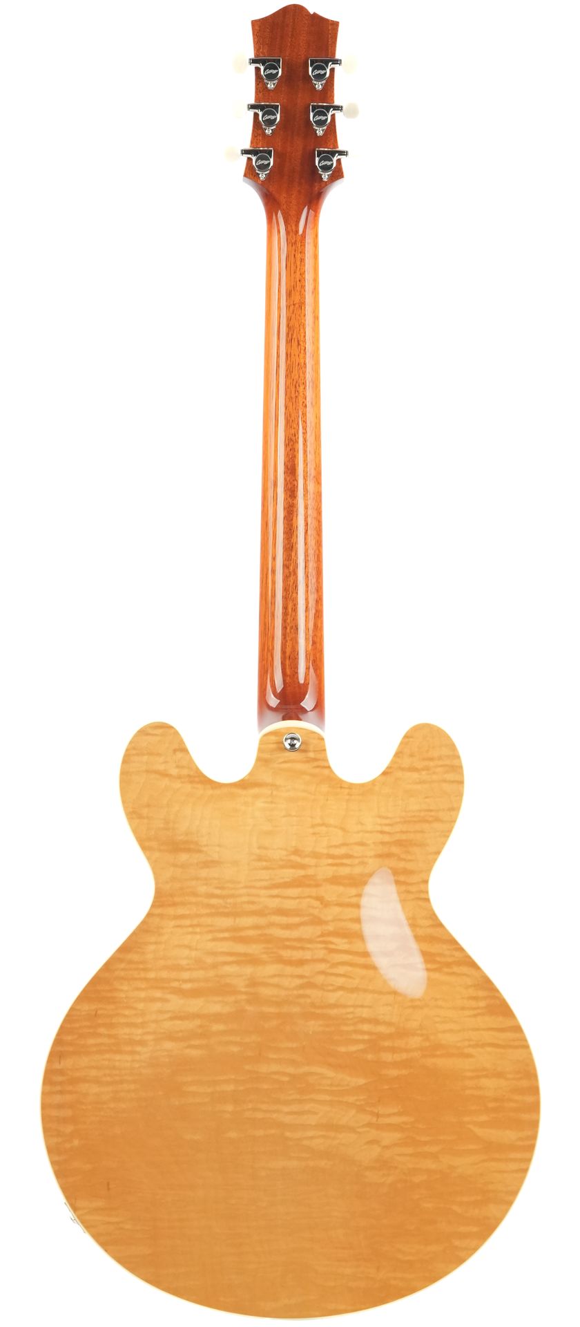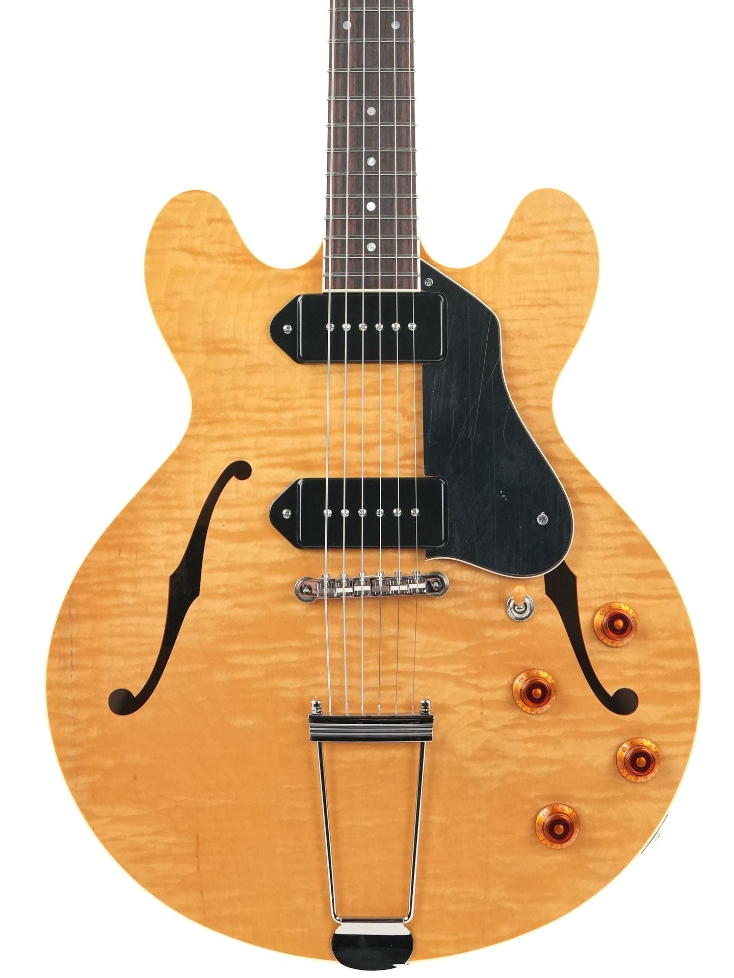The lightweight body features trestle bracing, developed after extensive R&D and knowledge gained from the popular I35 and Statesman LC guitars. The non-grained ivoroid body and neck bindings complement the flamed maple in a beautiful way. Lollar Dog Ear P90s are perfectly matched to the acoustic response of the instrument, offering a wide range of tones, from rich jazzy warmth to the British Invastion style of the 1960s.