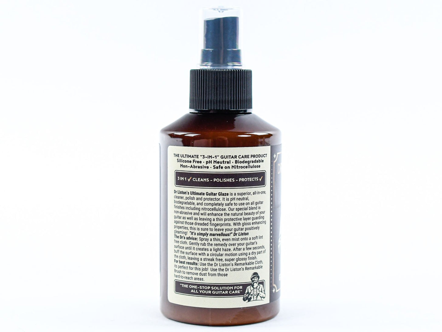For that ultimate showroom shine. Dr. Liston’s Ultimate Guitar Glaze is a high-quality finishing gloss that gives your guitar a deep, mirror-like shine. Perfect as a final step after polishing and protects against dust and fingerprints. Pure luxury in a 150ML bottle!