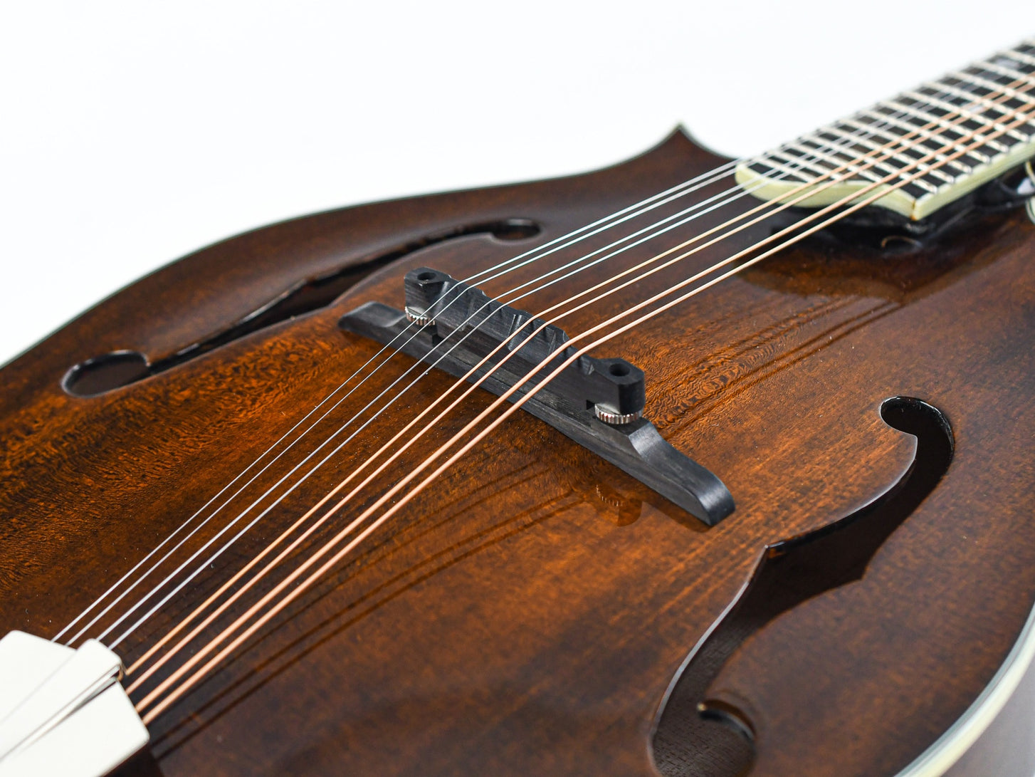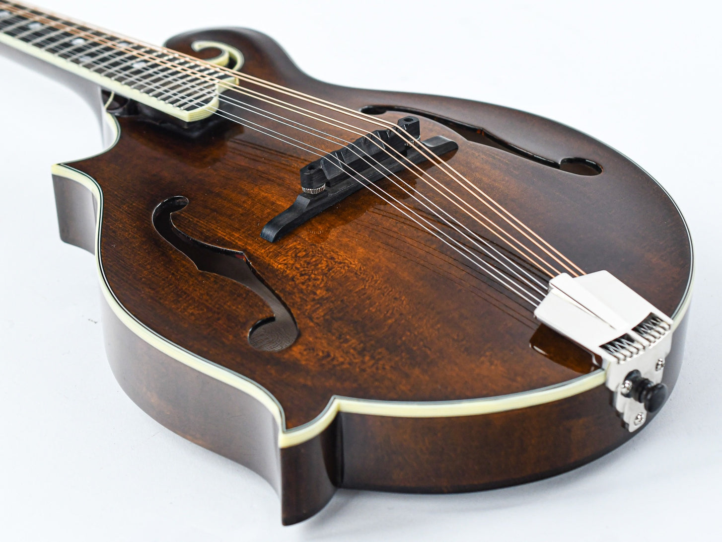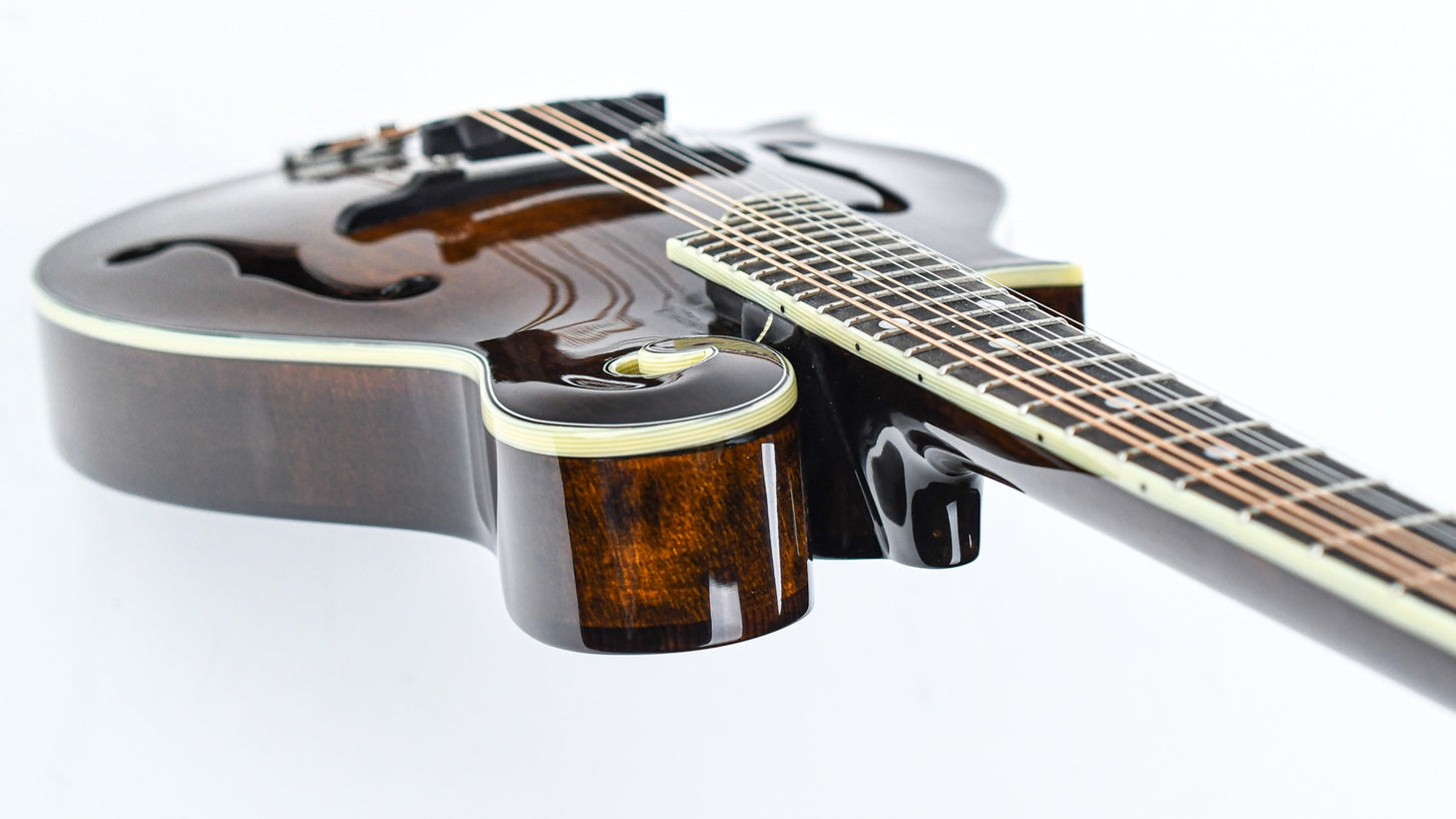 Eastman MD515, lefthanded. These instrumentes are individually hand-crafted using time-honored methods & premium hand-carved solid tonewoods with solid Spruce Top, solid Maple back & sides. Ebony fingerboard & adjustable ebony bridge. F-style body with F-holes for warm, ringing tones & excellent sound projection.