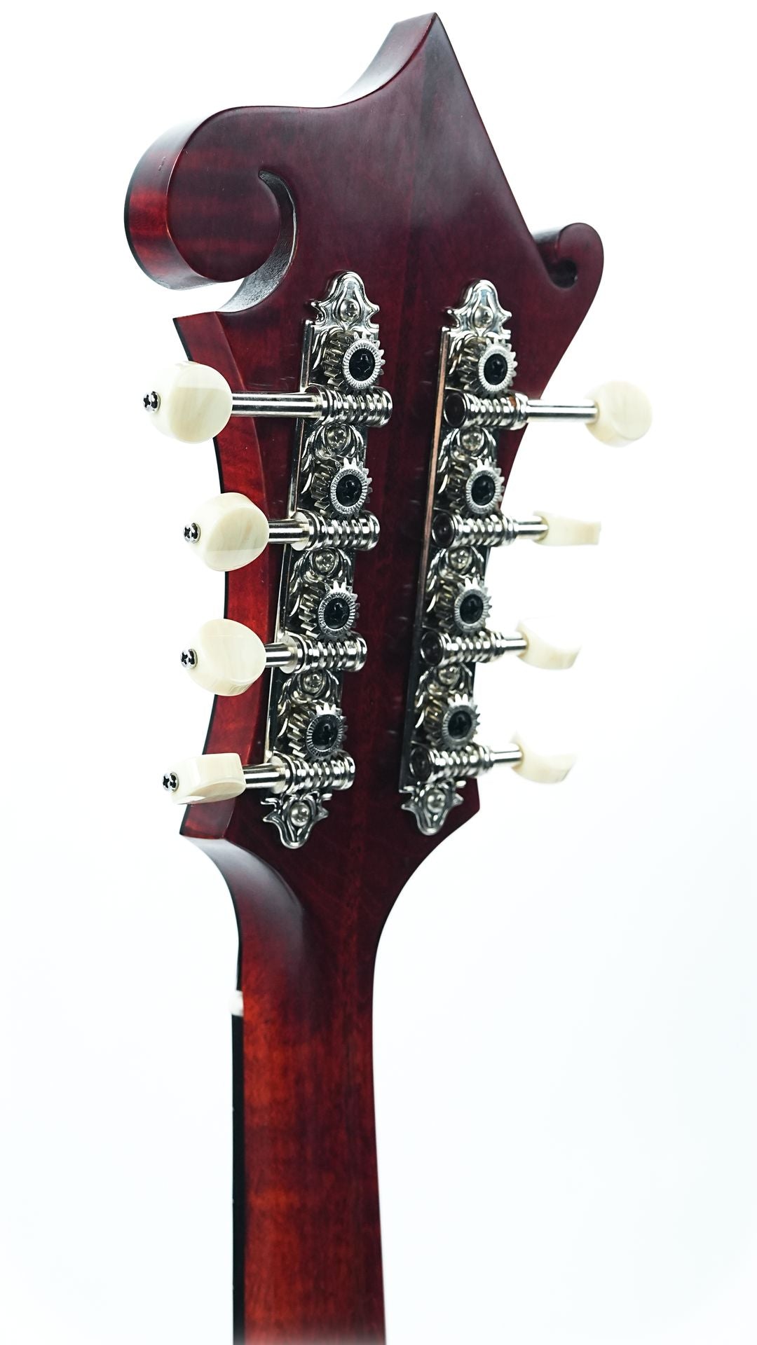 This mandolin features a solid spruce top that provides clarity and articulation, while the solid maple back and sides contribute to a balanced resonance with strong sustain. The maple neck with ebony fingerboard offers comfortable playability, supported by 23 Jescar frets and a 12 inch radius that makes playing across the entire neck a pleasure. Comes in a case with a certificate of authenticity.