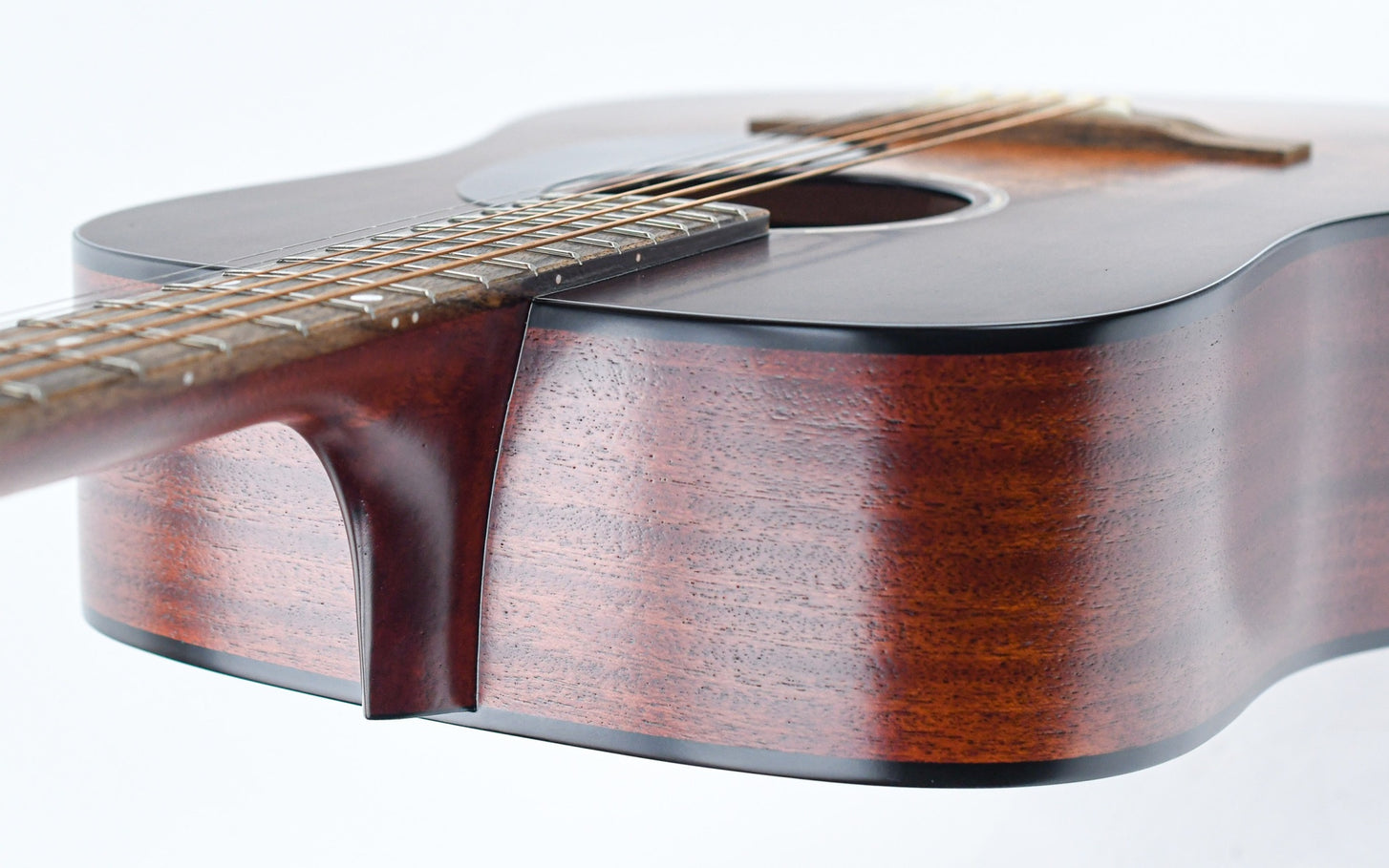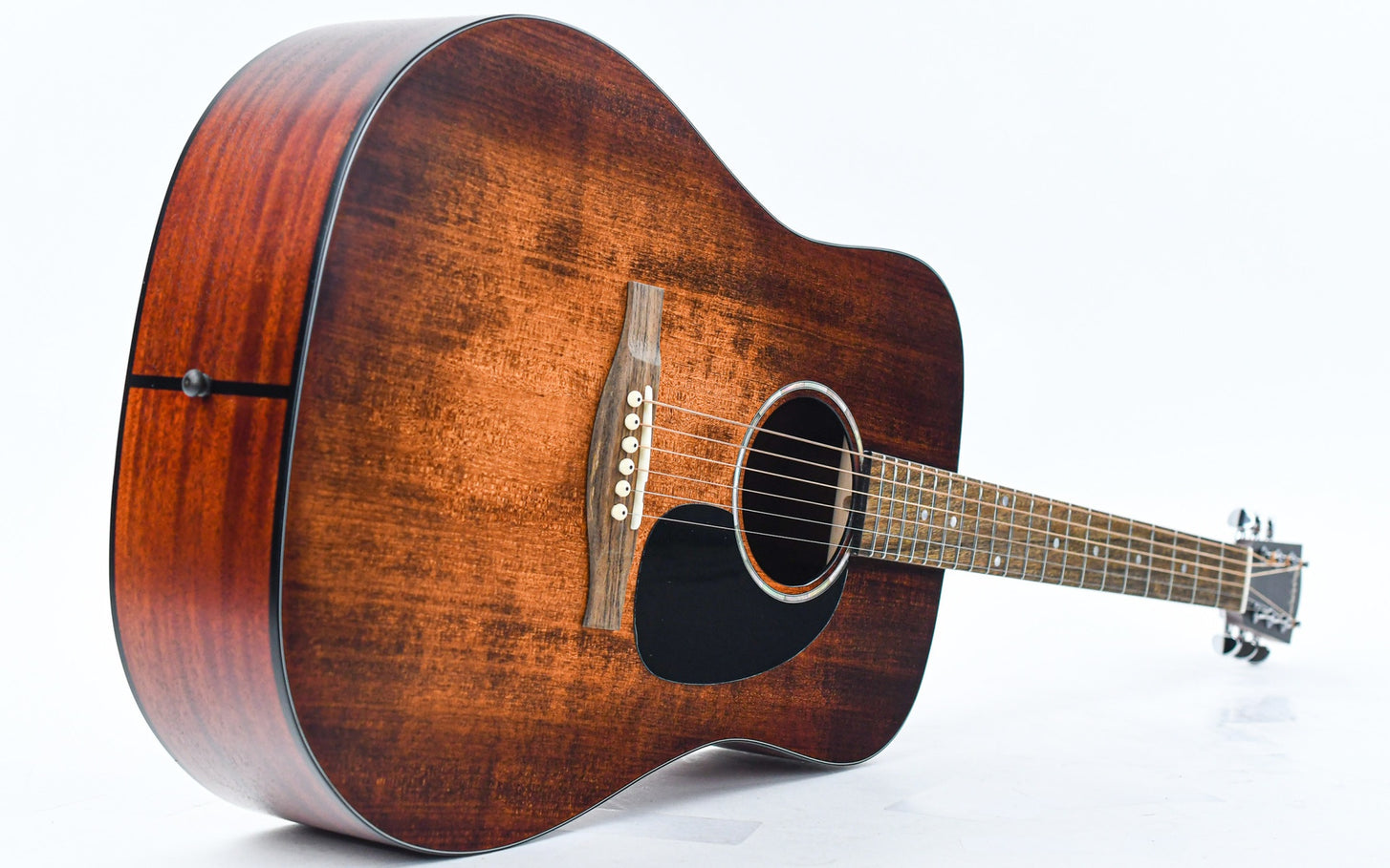 This PCH1-D contains a dreadnought body shape made of laminated sapele paired with a fully solid spruce top. The sapele neck is attached by means of a dovetail joint that creates the traditional tone Martin started a century ago. As a dreadnought, this guitar is a phenomenal strummer and flatpicker.