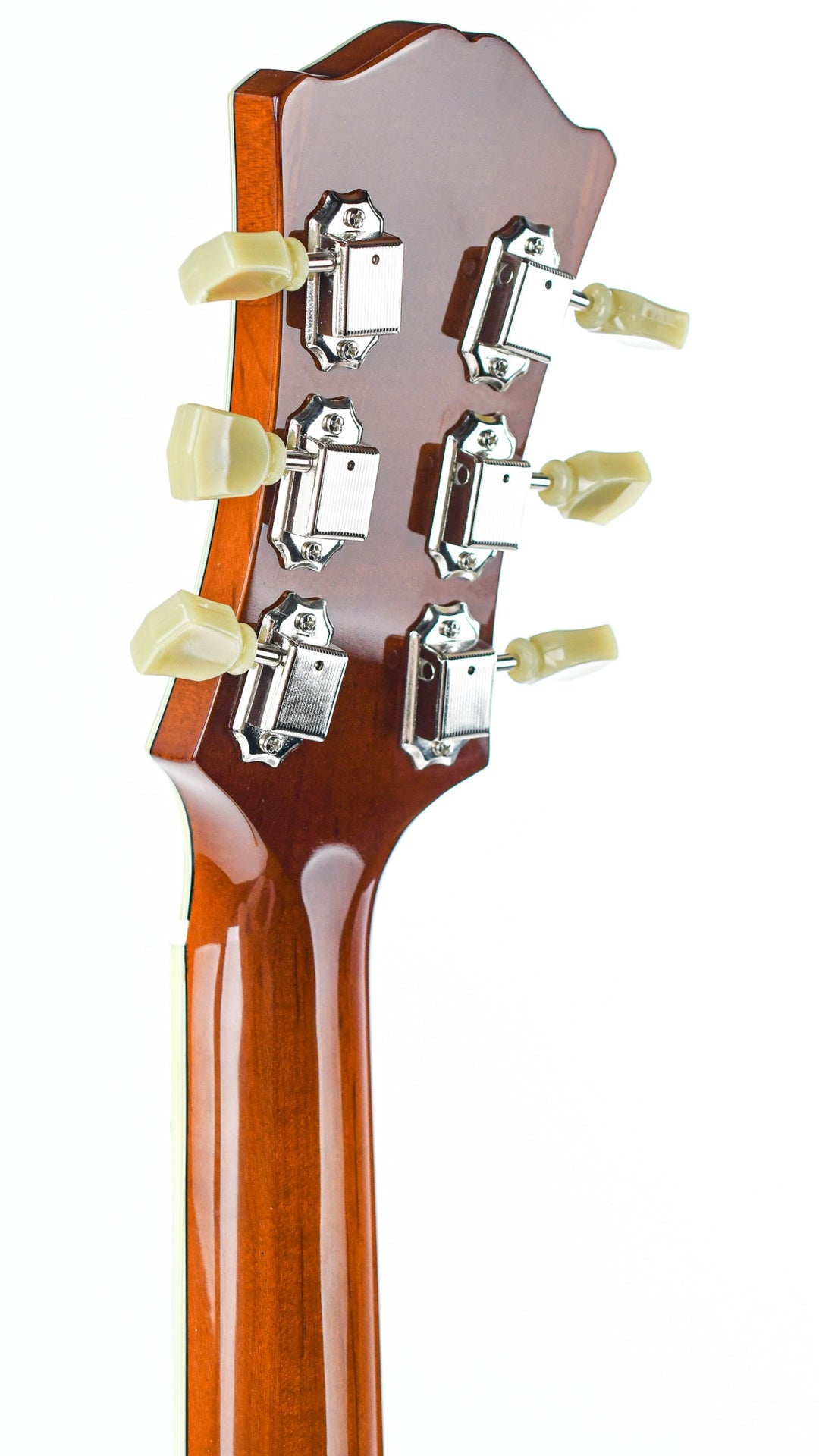 The rich Goldburst finish is complemented by the ivoroid bindings and the split parallelograms to provide a classic look. It has a comfortable hand filling neck profile and a nice width which allows you to find each and every position on the ebony fretboard easily. Comes in a hardshell case including the certificate of authenticity.