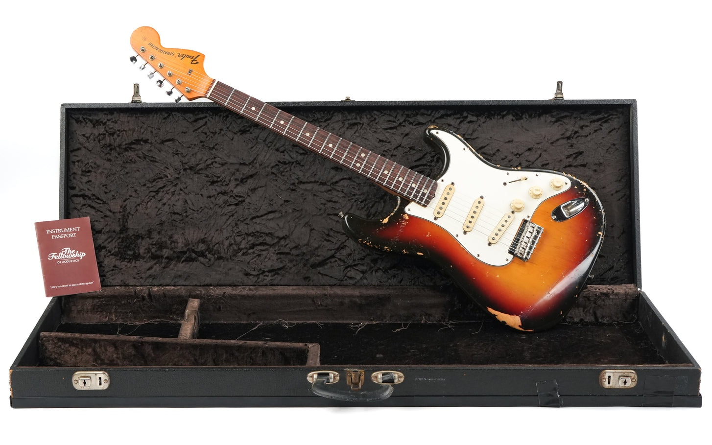 The guitar has been refretted, and the nut has also been replaced. The finish on both the body and neck shows some signs of wear and dings here and there, but for its age, the guitar is in very good condition. It plays smoothly, resonates beautifully, and possesses that unmistakable vintage character. A Stratocaster just begging to be played!
