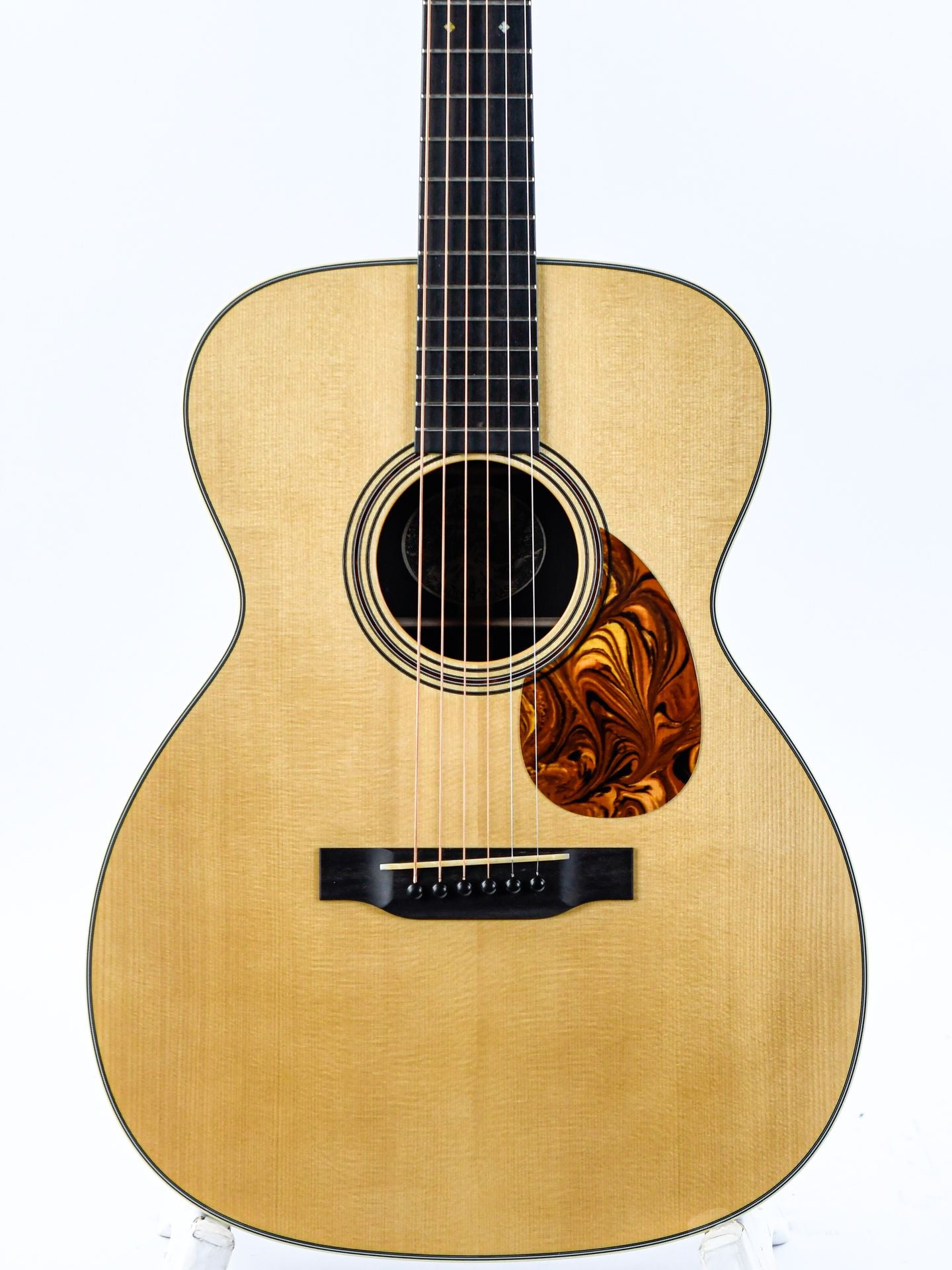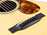 The OM2A HC features a fully adjustable truss rod, a mortise & tenon hybrid neck joint, and an aged bone cutthrough saddle, keeping the tone clear and balanced across the entire neck. The Honduran mahogany neck has a unique Hill Country neck profile that ranges from Modified C to Modified V, and is finished with an ultra-thin high-gloss nitrocellulose lacquer that allows the natural resonance of the wood to shine.
