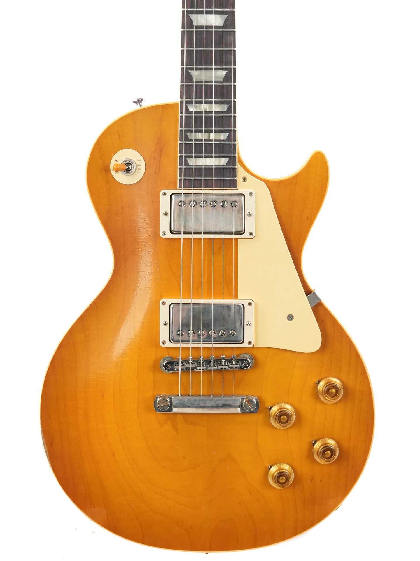 With its round, "chunky" C-shaped neck, the 1958 Les Paul offers a full, comfortable grip that’s perfect for both power chords and expressive bends. The narrow frets help the tones of the Indian Rosewood fingerboard come through beautifully, creating a rich and versatile sound. Its perfect weight for a Les Paul at 3.98 kg makes this Gibson impressively resonant!