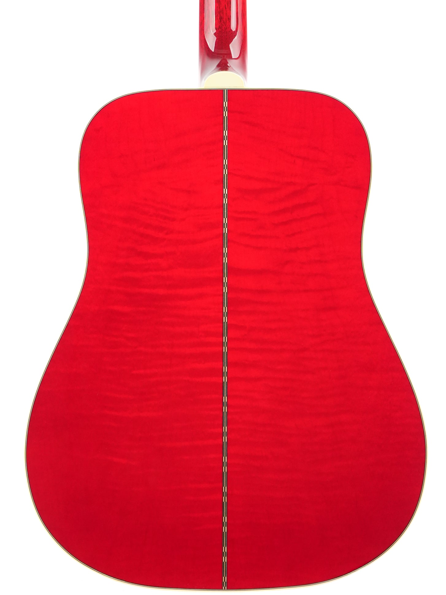 Under the hood, it is all about definition and projection. The solid Sitka spruce top provides a fast response and a clear foundation, while the flame maple back and sides ensure a tight, focused tone with clear articulation. Combined with the long scale length, this delivers a powerful, open sound that holds up well in a band setting. The square shoulder body adds just enough warmth and balance to make the whole sound musically rounded. The traditional scalloped X-bracing contributes to a lively, dynamic character with plenty of headroom.