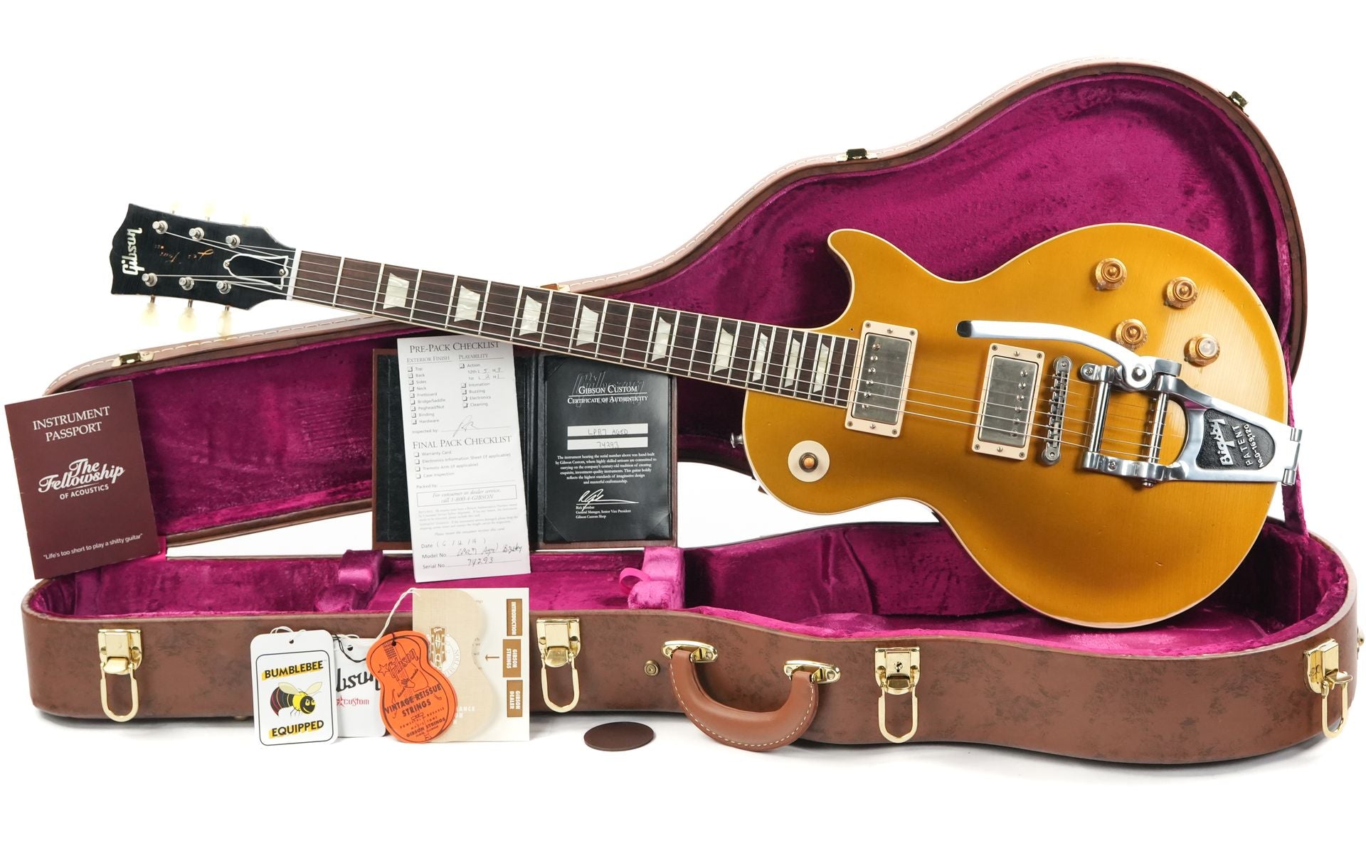 The Gibson Custombucker pickups deliver that typical vintage output with plenty of character, sustain, and dynamics. A special feature of this guitar is the added Bigsby vibrato, which adds extra expressiveness and makes it perfectly suited for roots music, rockabilly, and blues.