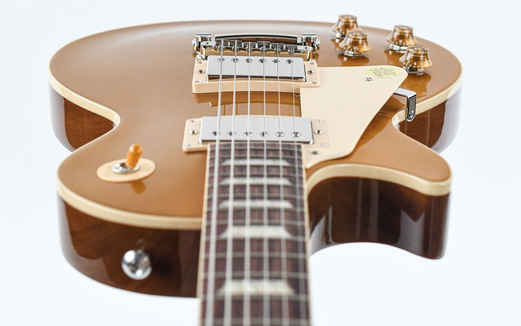 It's equipped with an ABR-1, the classic-style Tune-O-Matic bridge, aluminum stop bar tailpiece, vintage deluxe tuners with keystone buttons, and aged gold tophat knobs. The calibrated Burstbucker 1 (neck) and Burstbucker 2 (bridge) pickups are loaded with AlNiCo II magnets, audio taper potentiometers and orange drop capacitors. Includes hardshell case and case candy.