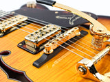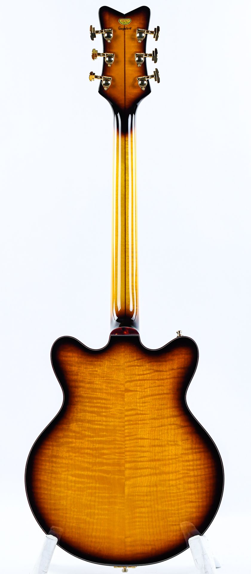 This Gretsch Custom Shop G6136-CS Junior Double Cut in Two Tone Sunburst is the work of Master Builder Gonzalo Madrigal, the man behind iconic tribute guitars for Clapton, Stevie Ray Vaughan and George Harrison. With its beautiful hollowbody construction, Filter'Tron pickups and Bigsby tremolo, this guitar delivers the authentic Gretsch sound that generations of guitarists have dreamed of.