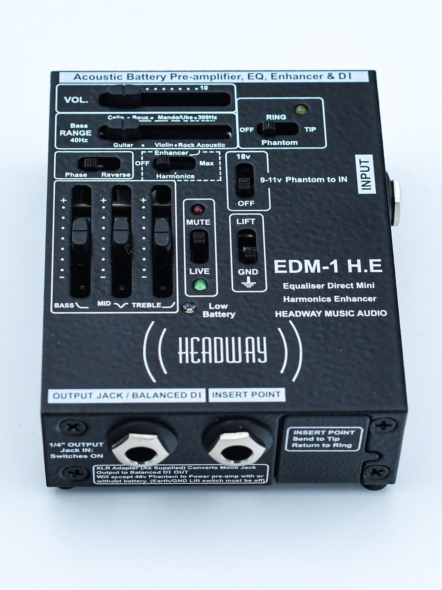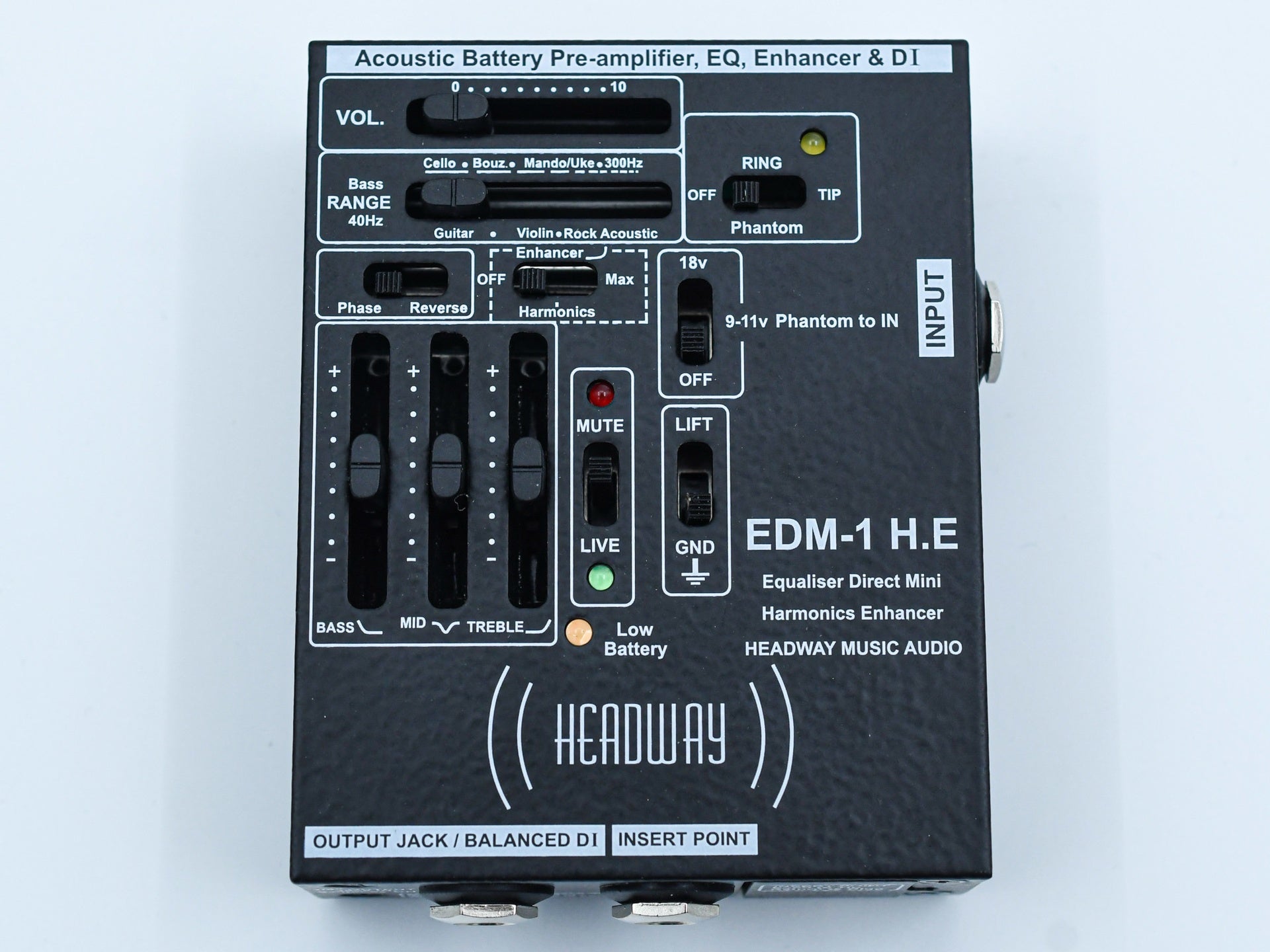 The Headway EDM-1 Preamp follows the success and 5 star reviews of the EDB-1 Equaliser Direct Blend Pre-Amp. Headway listened to customer’s feedback resulting in the addition of the ultra-compact EDM-1 preamp.