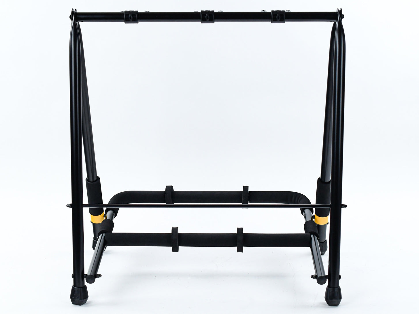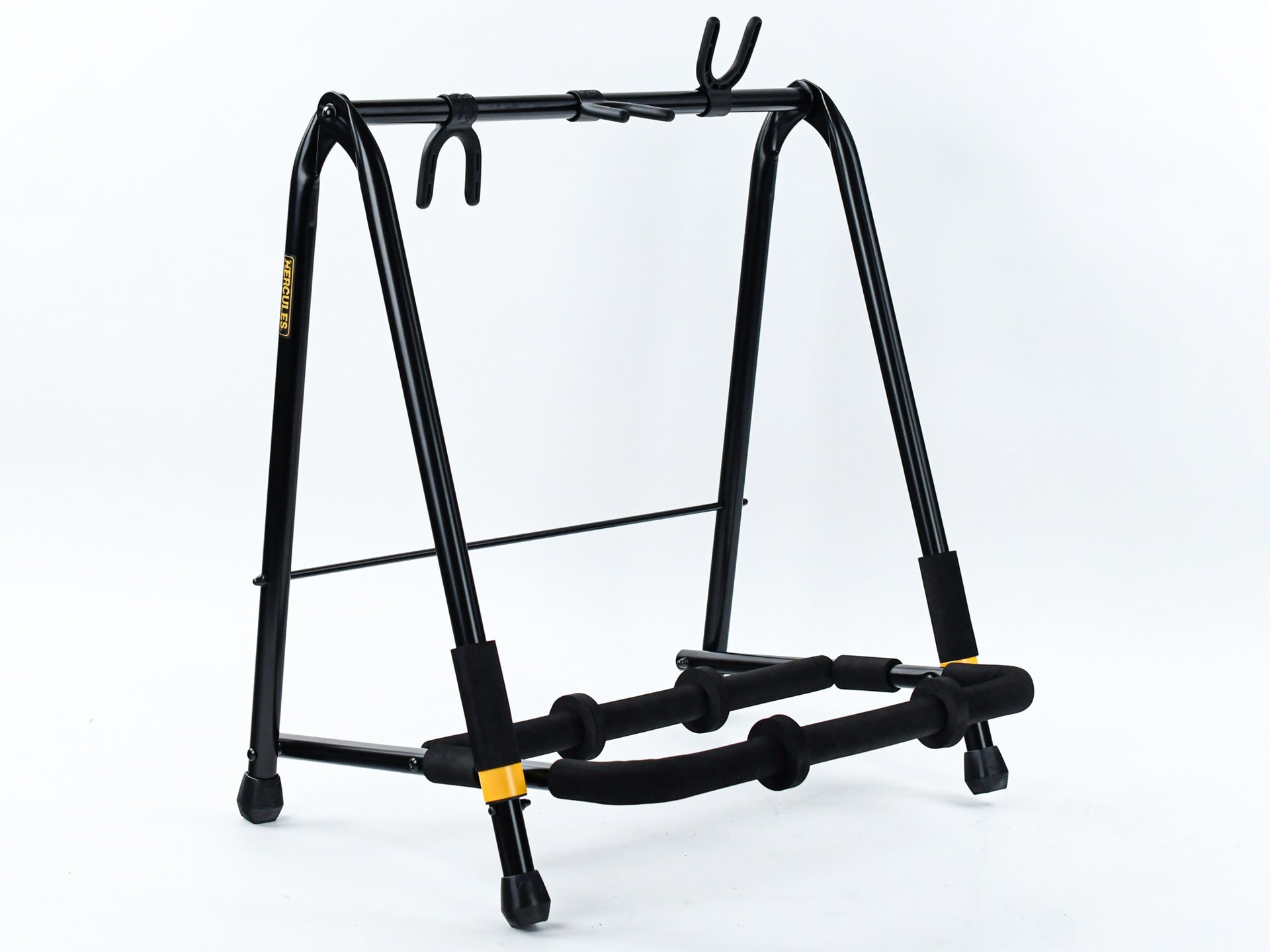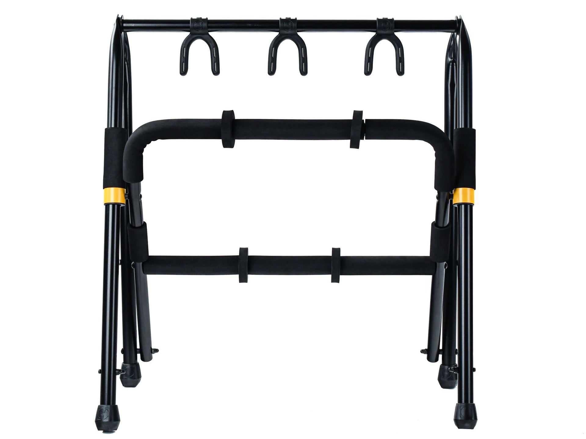 The HERCULES Multi-Guitar Rack GS523B accommodates three guitars with Specially Formulated Foam (SFF) rubber covering all contact points.