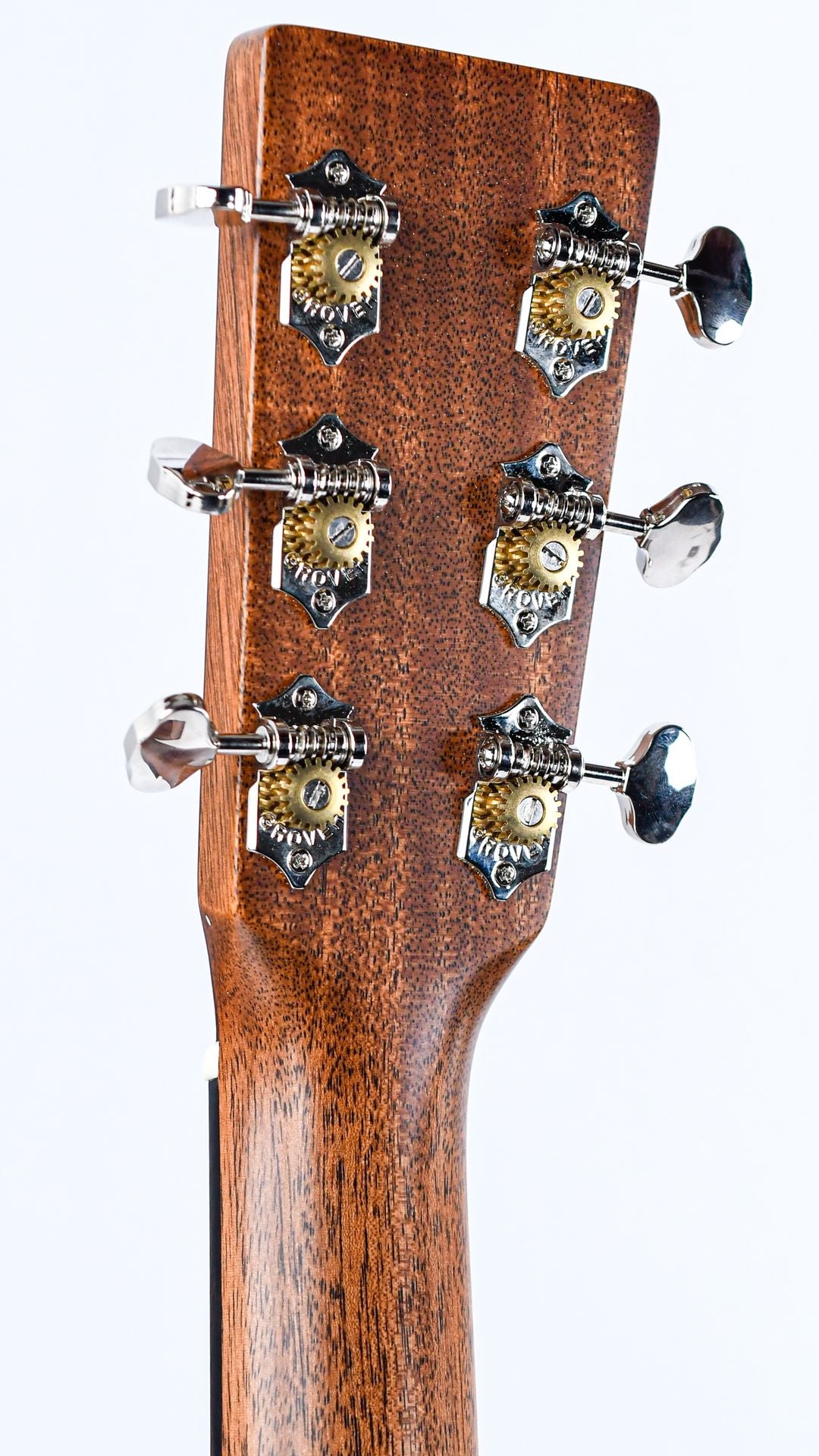 The satin neck with a Golden Era (GE) Modified Low Oval profile, high-performance taper, and 24.9" scale length ensures unmatched playability. Elegant ebony details, including the bridge, bridge pins, and fingerboard with abalone dot inlays, enhance its timeless design. Complete with aging toner on its top, black binding, and nickel open gear tuners, the 000-18 is a guitar you can trust to unleash the artist within.
