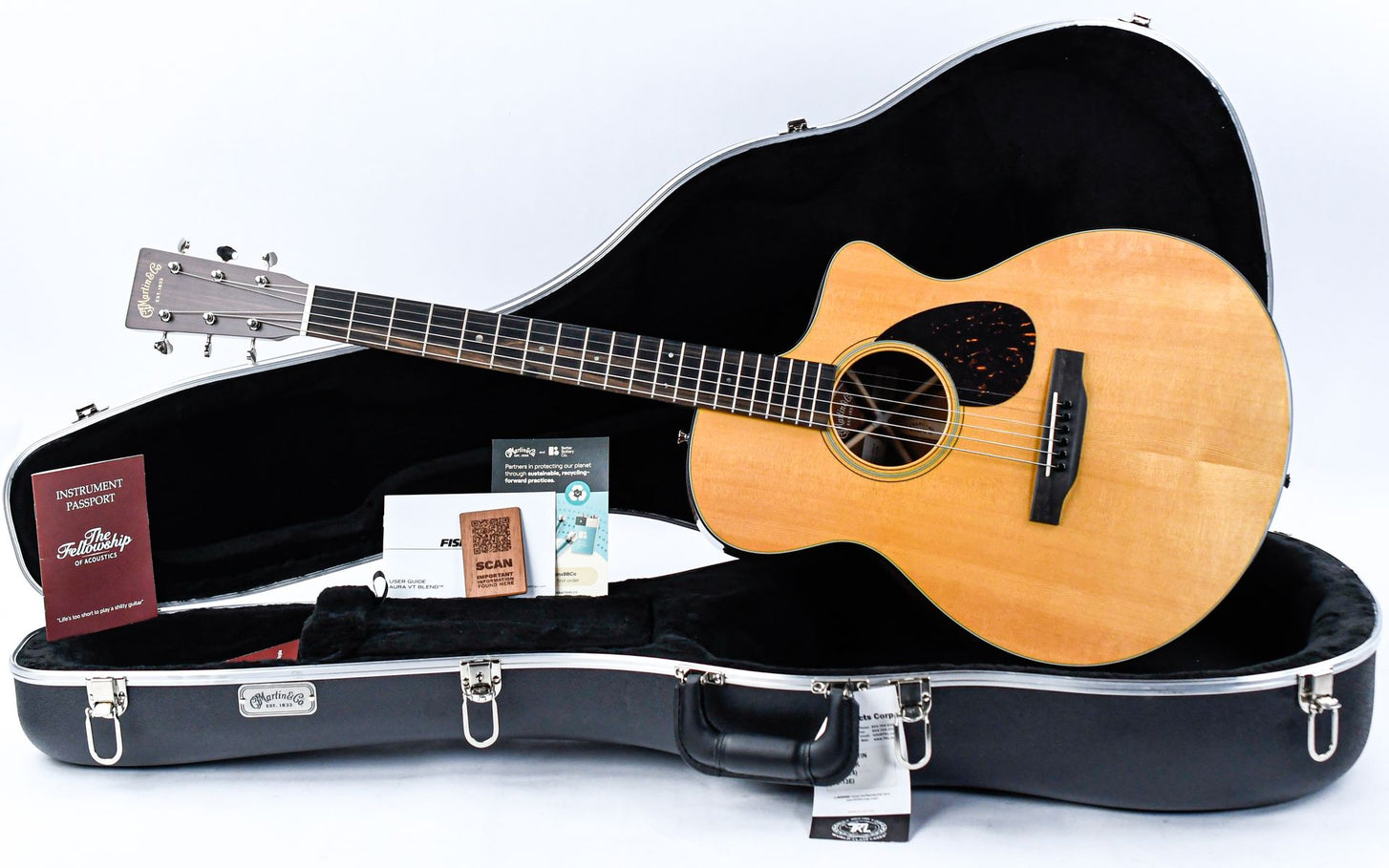 This gloss guitar features a spruce top with mahogany back and sides, giving you plenty of volume, bright treble, and punchy midrange for that classic Martin sound. It also features an ebony fingerboard and bridge, nickel open gear tuners, Fishman Aura VT Blend or LR Baggs Anthem electronics, and is strung with LUXE BY MARTIN Kovar strings.