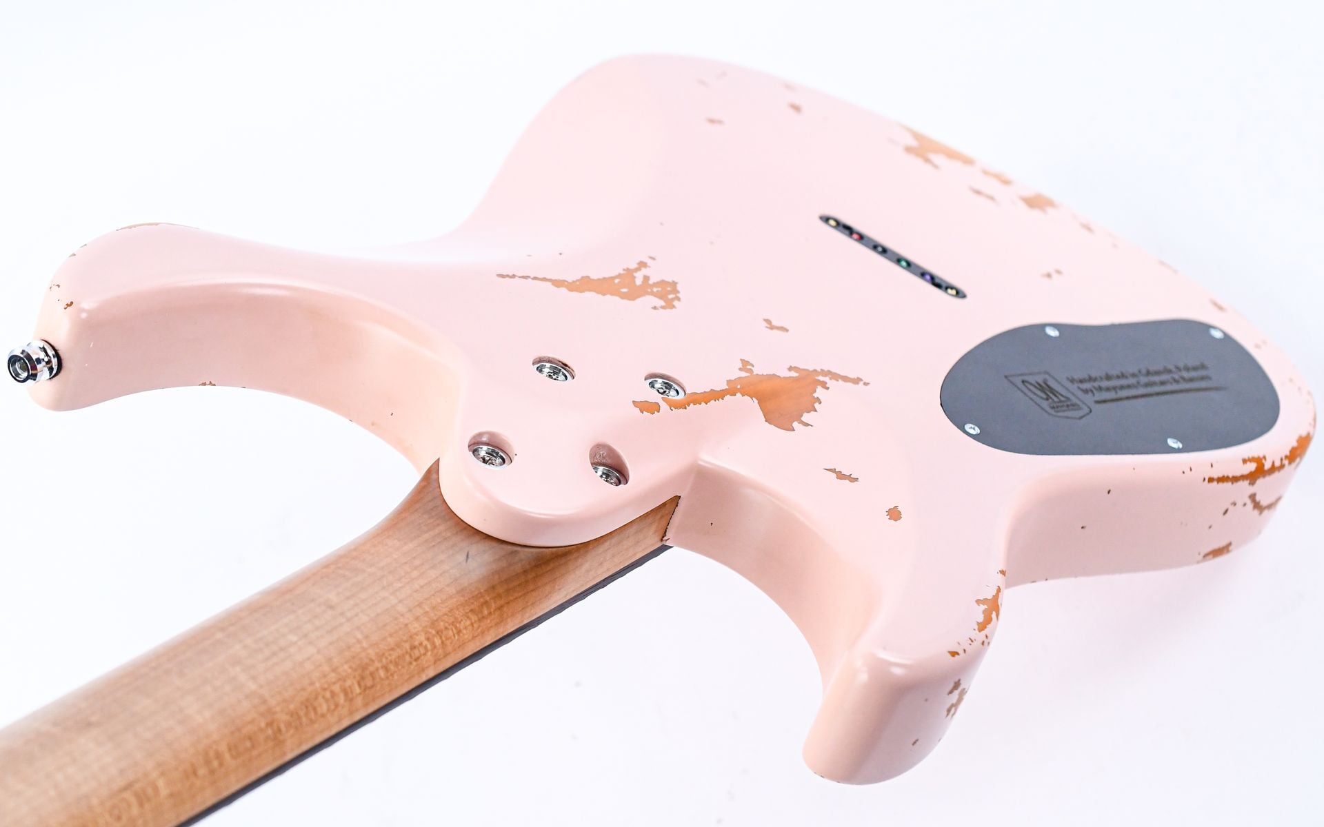 The Mayones Aquila V24 S 6 in Aged Shell Pink is a modern interpretation of the classic superstrat, where Polish craftsmanship meets contemporary specifications in a striking pink finish. With its refined Velvetrone Ironside pickup combination and sleek construction, this guitar makes a statement that radiates both vintage charm and modern versatility.