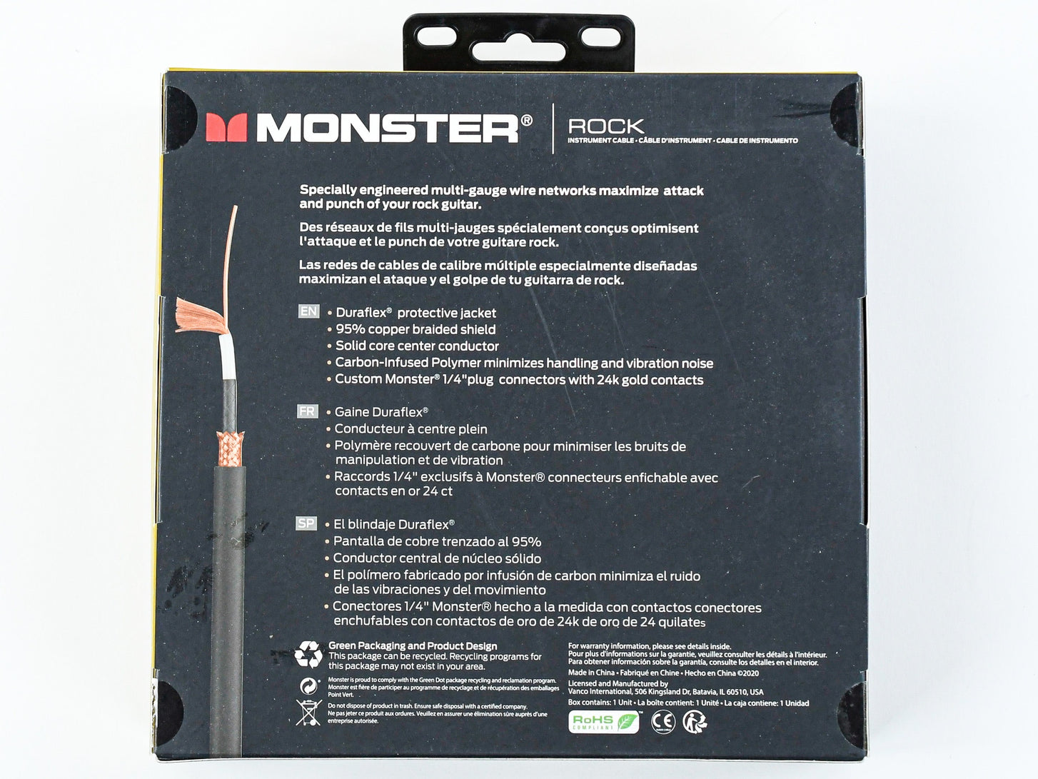 The Monster ROCK2-21A gives you a 21FT / 6.4M high-performance, right-angled 1/4″ instrument cable specifically suited for rock guitar. Like all Monster cables, the Rock will enhance the sonic bite and character of your electric instrument. Featuring a dense shield, the Monster Rock cable rejects interference and hum. As well as multi-gauge wire networks that maximize your guitar’s tone. While its heavy-duty 24K gold connectors increase conductivity and resist corrosion. Above all, these Rock cables are sure to give you the best sound possible for your Rock guitar.