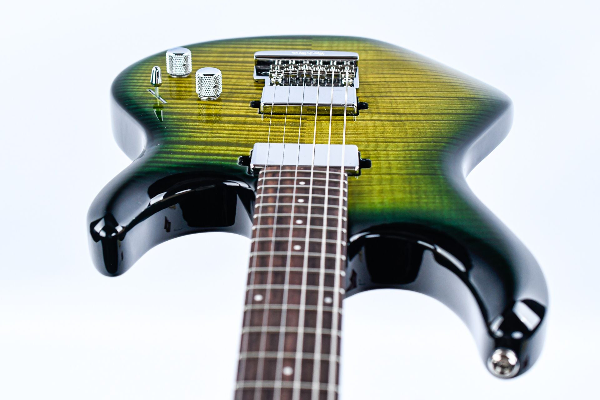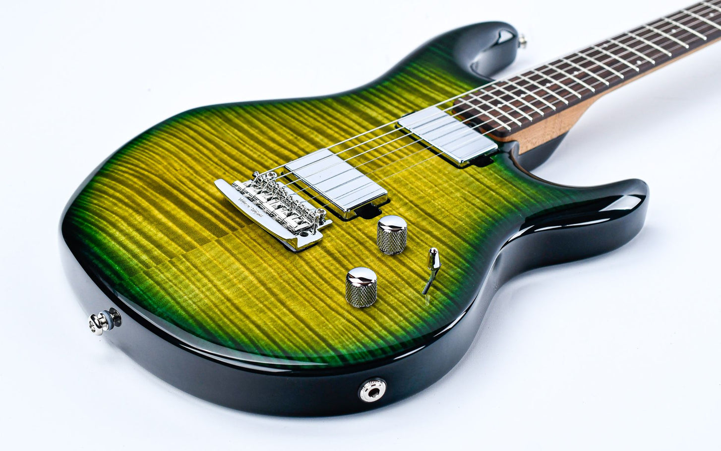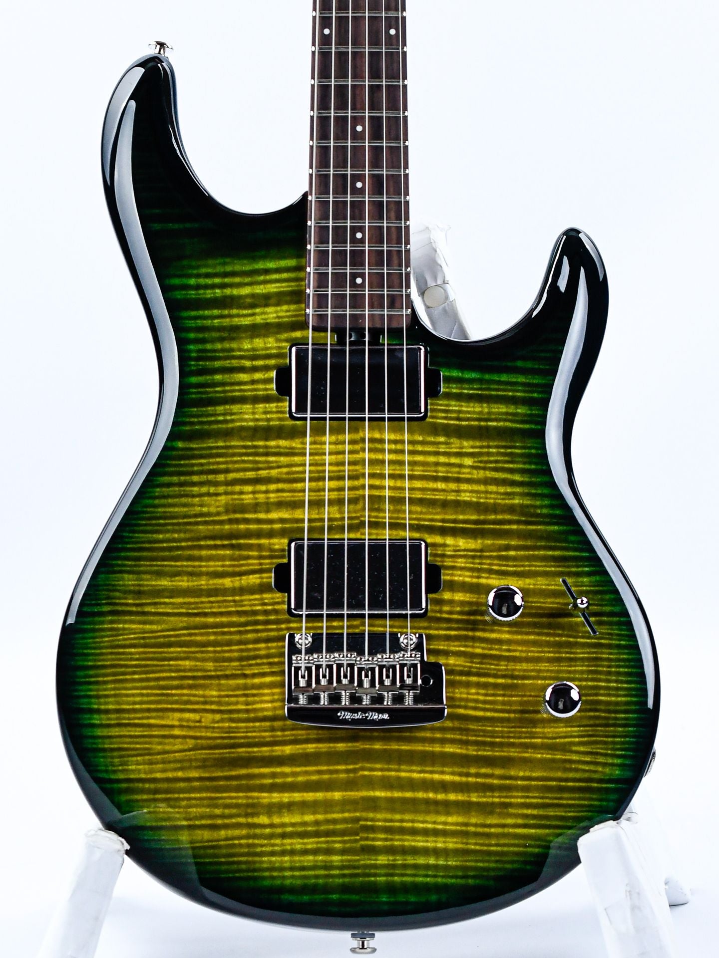 This guitar features custom Music Man humbucking pickups that deliver a high-output, dynamic range. The pickups offer powerful low-end while retaining clarity at lower volumes. The 5-way switch provides tonal versatility, and the adjustable 12dB boost lets you push the signal for soloing or heavier rhythm work.
