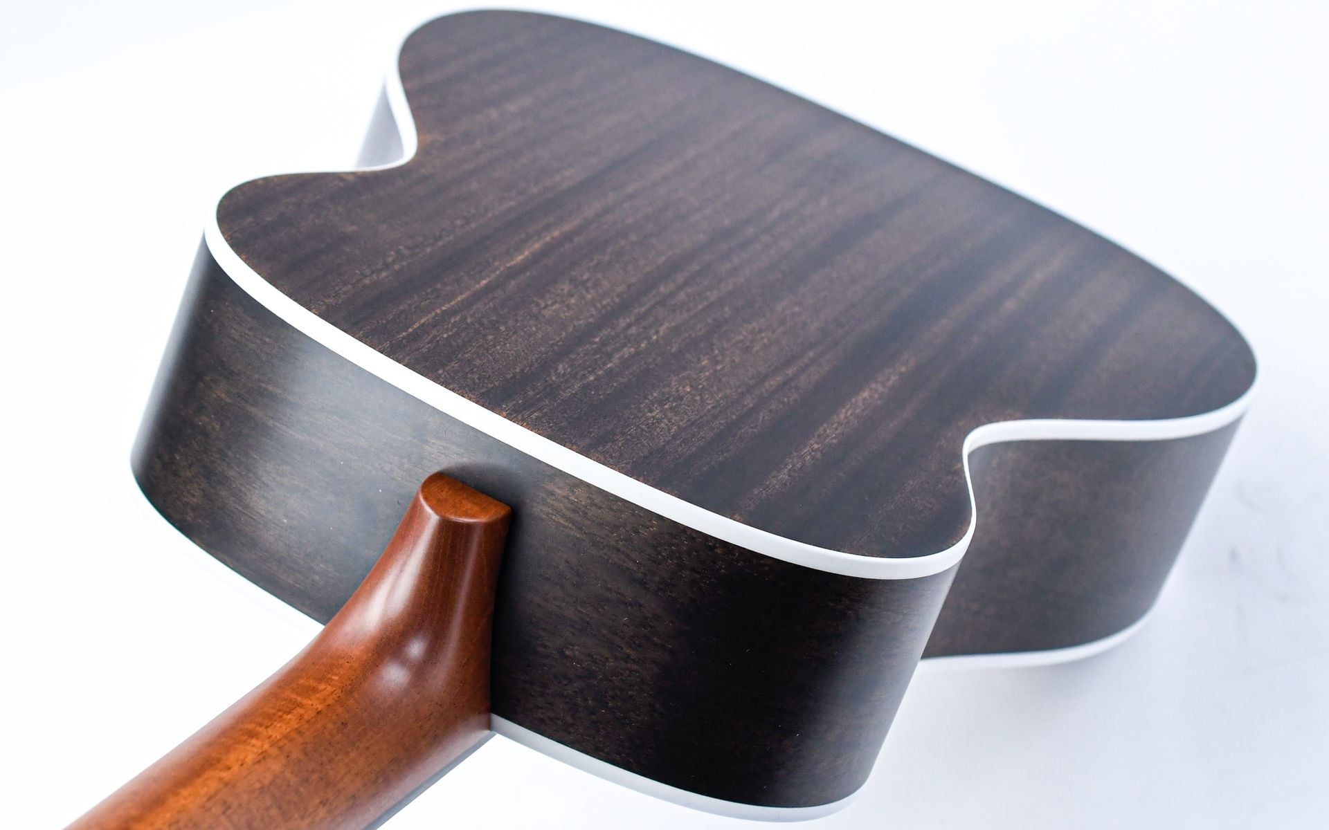 It’s improved low-end response combined with the singing high-end tone creates a louder, punchier guitar that truly projects. The mahogany neck is capped by an ebony fretboard and mother-of-pearl position markers.
