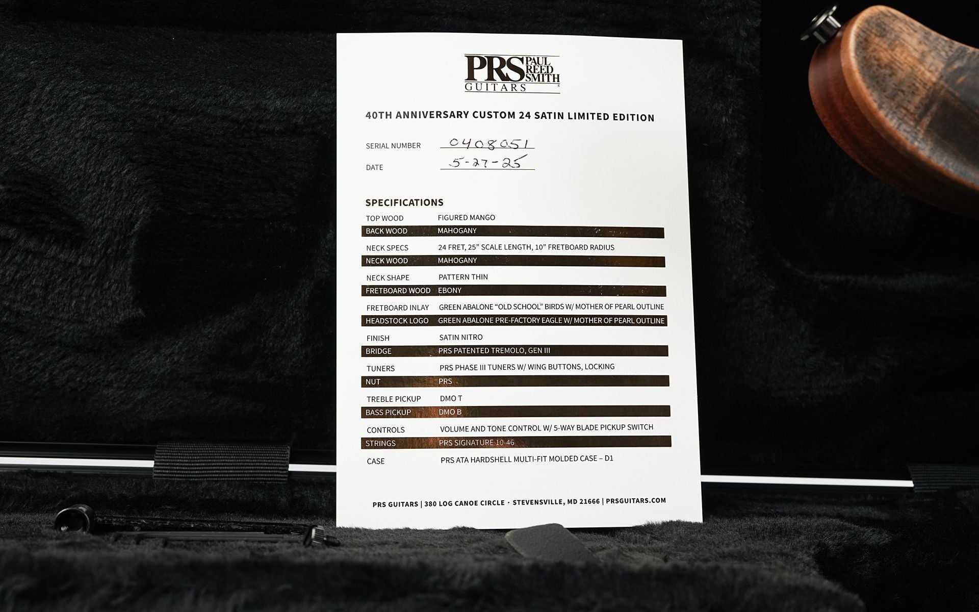 The 40th Anniversary Custom 24 Satin Limited Edition celebrates four decades of PRS Guitars by bringing some new and noteworthy features to the model that started it all.