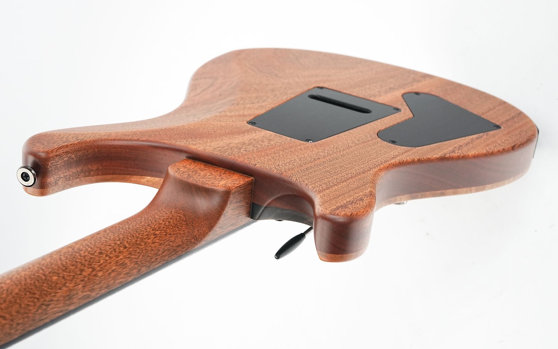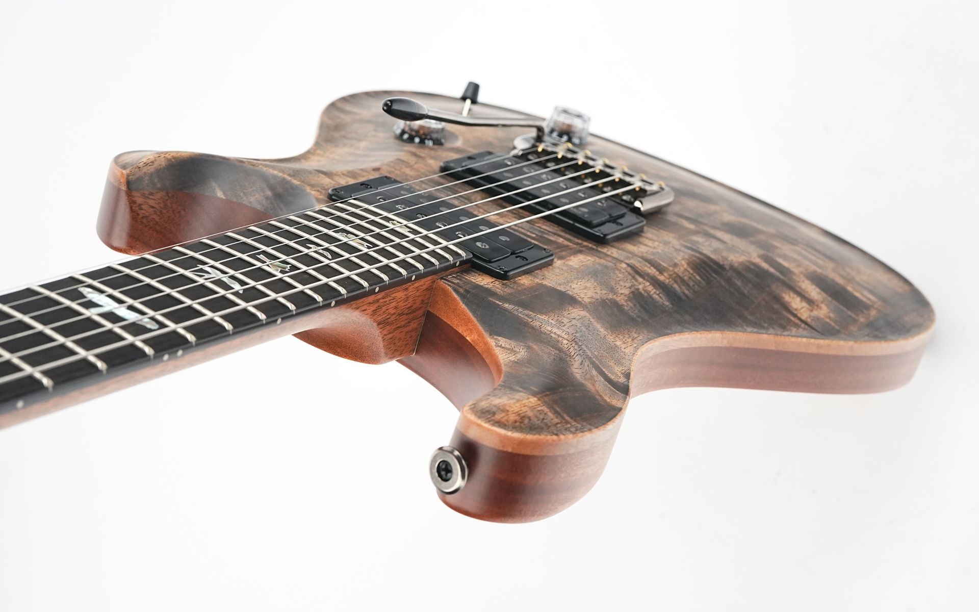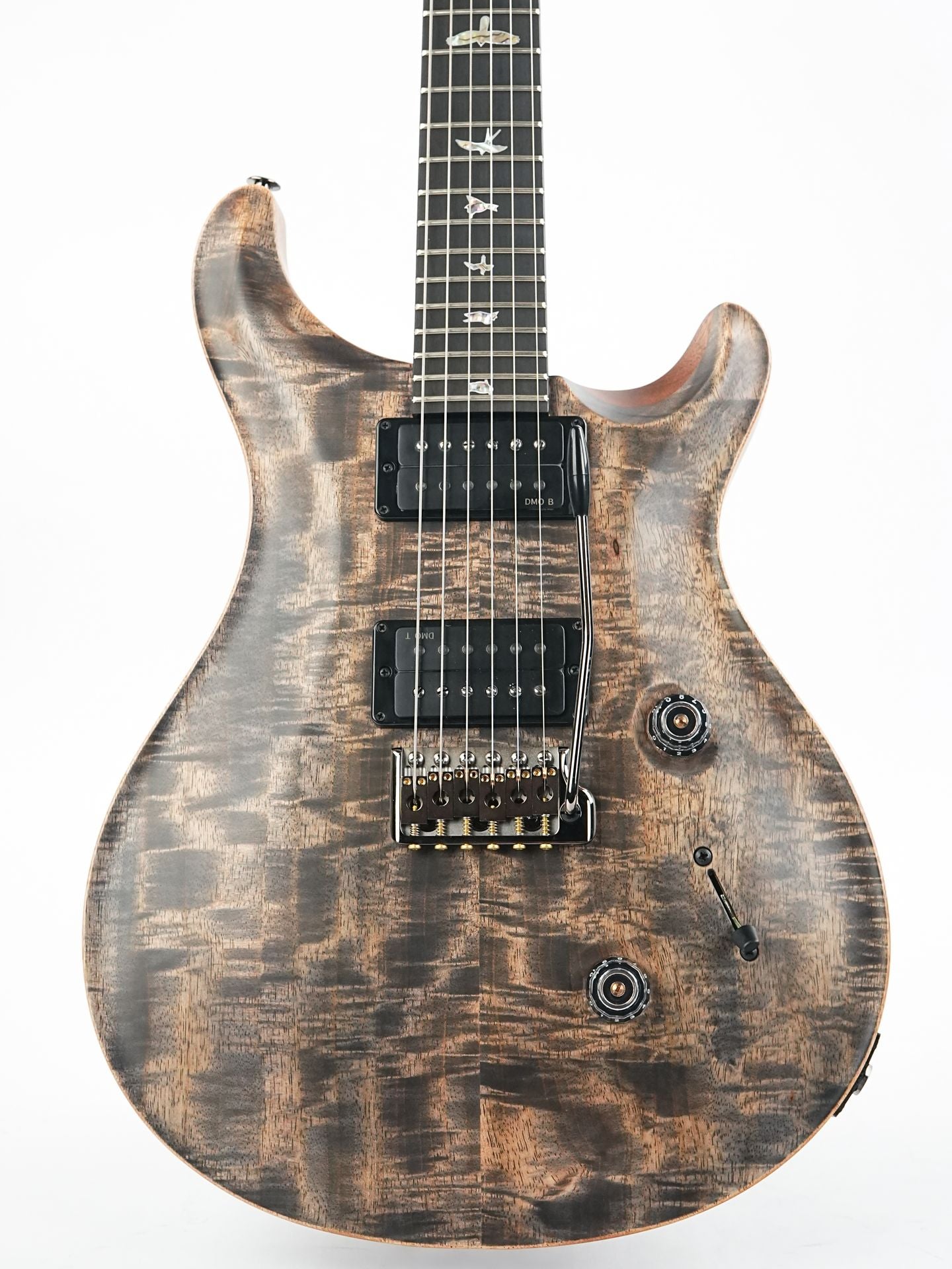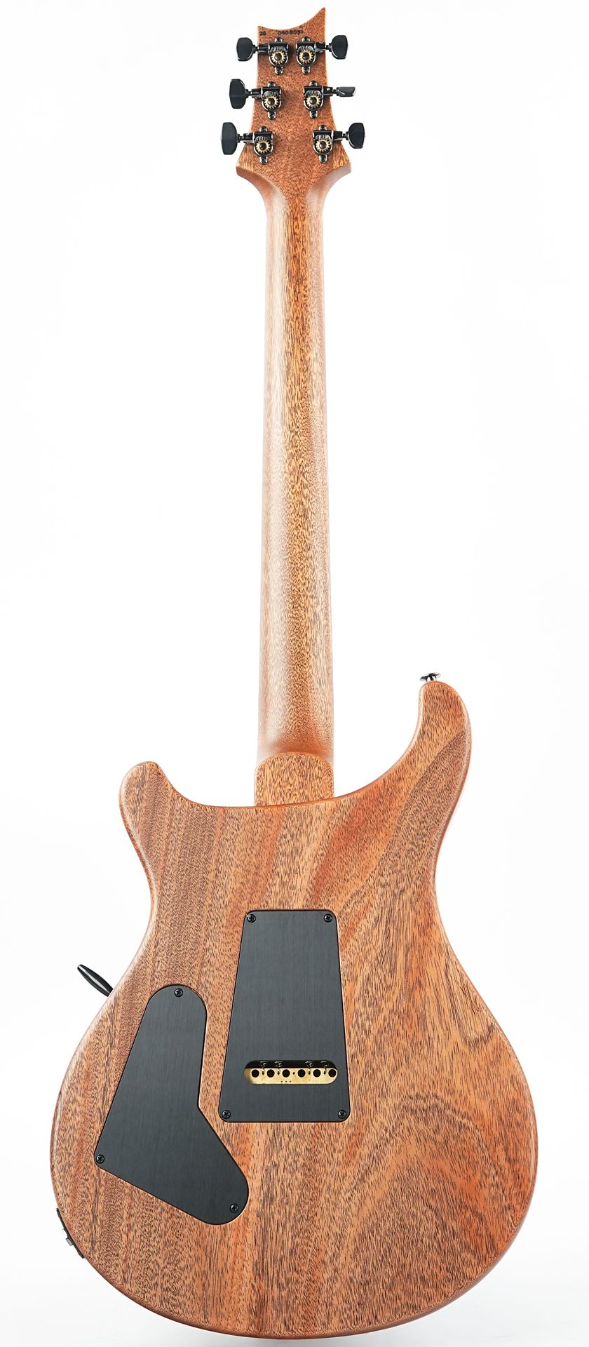 Most notably, this limited edition exchanges the Custom 24’s classic maple for a striking figured mango top. Mango wood retains much of the sound characteristics as maple while bringing an almost “quilted” look to these guitars. The satin nitro finish adds to the guitar’s unique aesthetic appeal by bringing a more natural vibe to the instrument – along with great feel and resonant tone. The ebony fretboard and headstock veneer feature PRS “Old School” birds with outlines and a PRS “Pre-Factory” eagle on the headstock, which both pay homage to early PRS guitars.