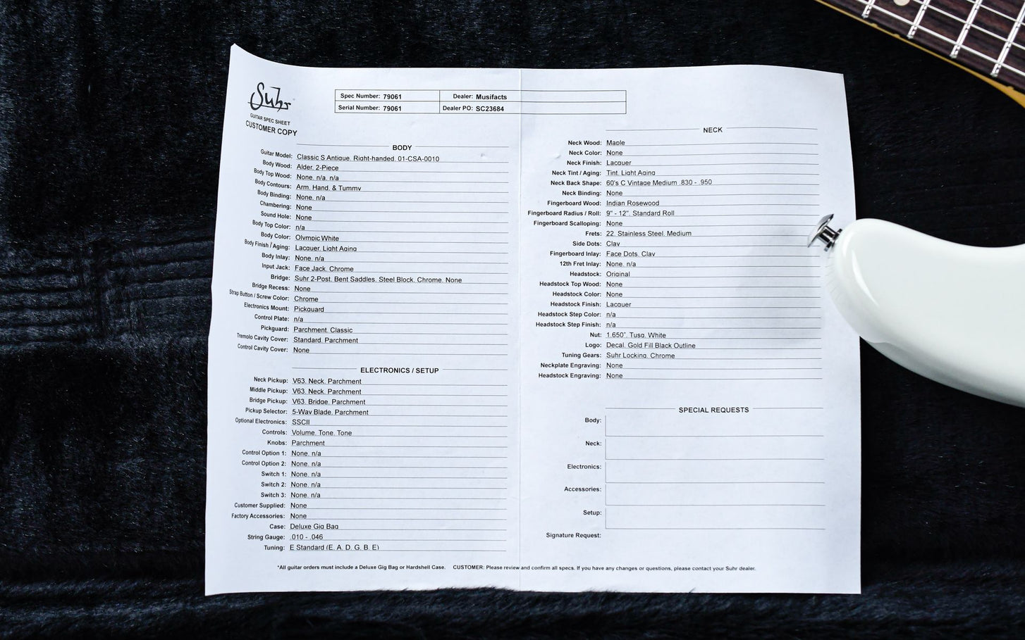 This Classic S has a light aged Olympic White finish, which contrasts beautifully with the Indian rosewood fingerboard and forms a beautiful combination with the parchment pickguard. As befits Suhr, this guitar also has an impeccable finish and an extremely fine playability. The guitar comes with a TFOA passport in a case.