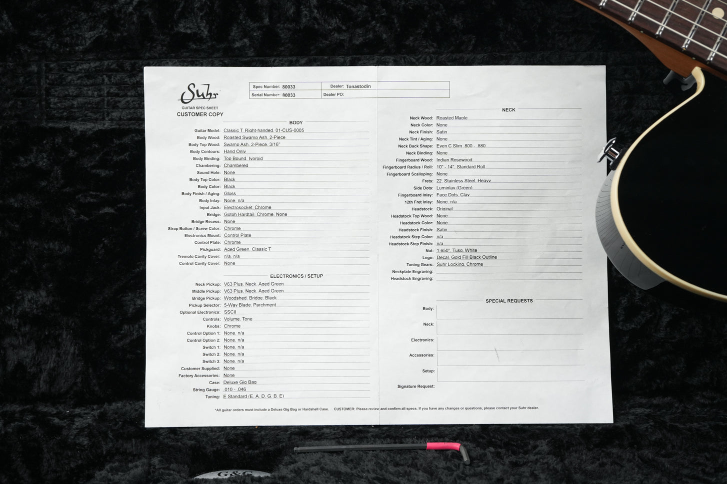 This Suhr was built in 2024, and is still in near mint condition with only light play marks on the pickguard and back of the body. Comes with TFOA passport in a hardshell case.
