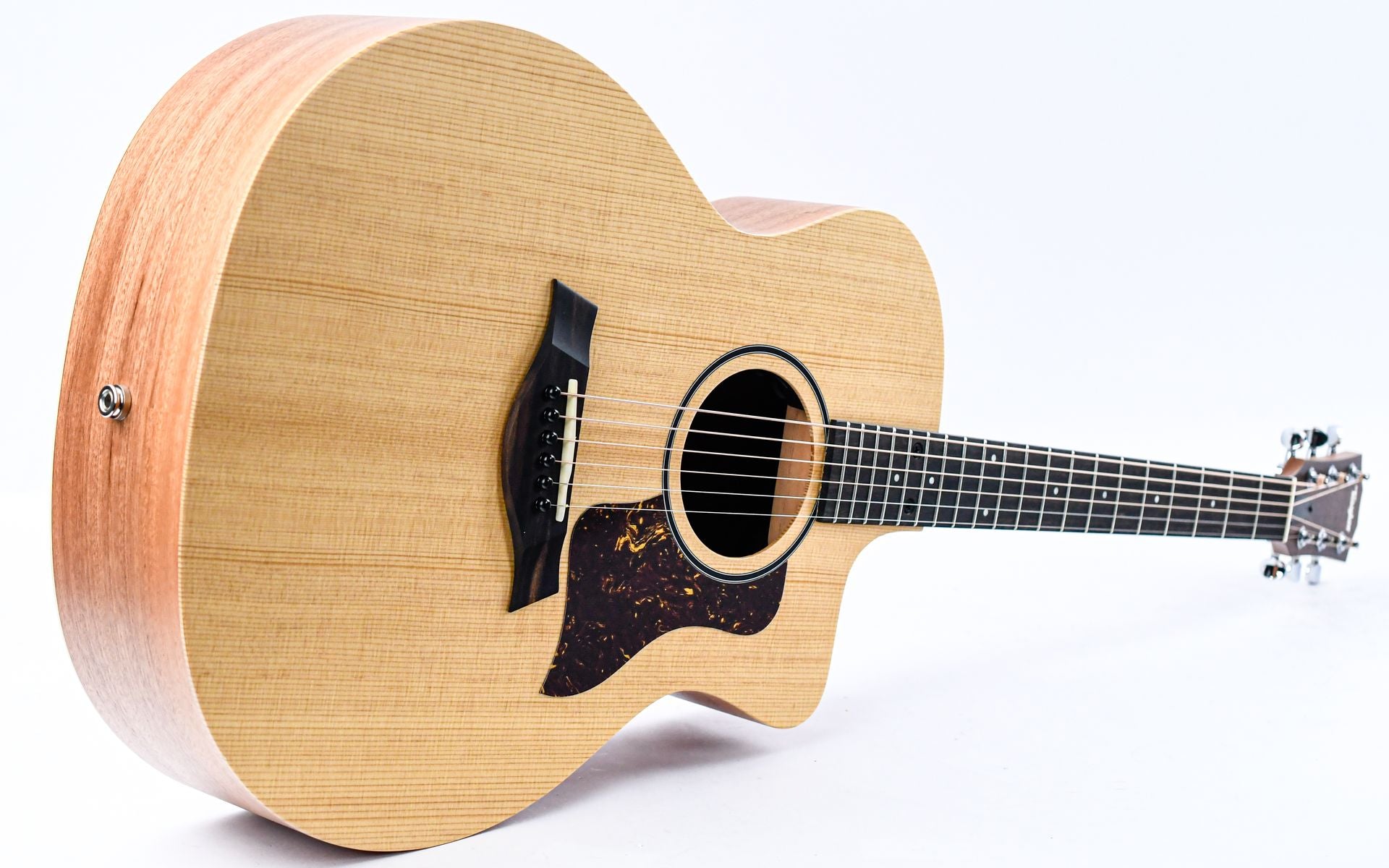 The Taylor 14ce combines the familiar playing feel and vibrant tone of a full-size Grand Auditorium cutaway, offering excellent value for guitarists seeking a versatile and reliable electro-acoustic guitar. The laminated African sapele back and sides, combined with a solid torrefied spruce top, deliver a clear, defined tone with powerful projection and a touch of warmth, thanks to a special roasting process that adds extra depth to the sound.
