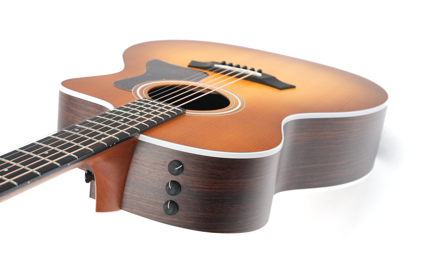 The Taylor 214ce Special Edition Honeyburst is a versatile Grand Auditorium that pairs rich tone with striking looks. Featuring a torrefied spruce top and layered Indian rosewood back and sides, this model delivers a clear and balanced voice with warm lows, articulate mids and a sparkling top end that adapts effortlessly to a wide range of playing styles.