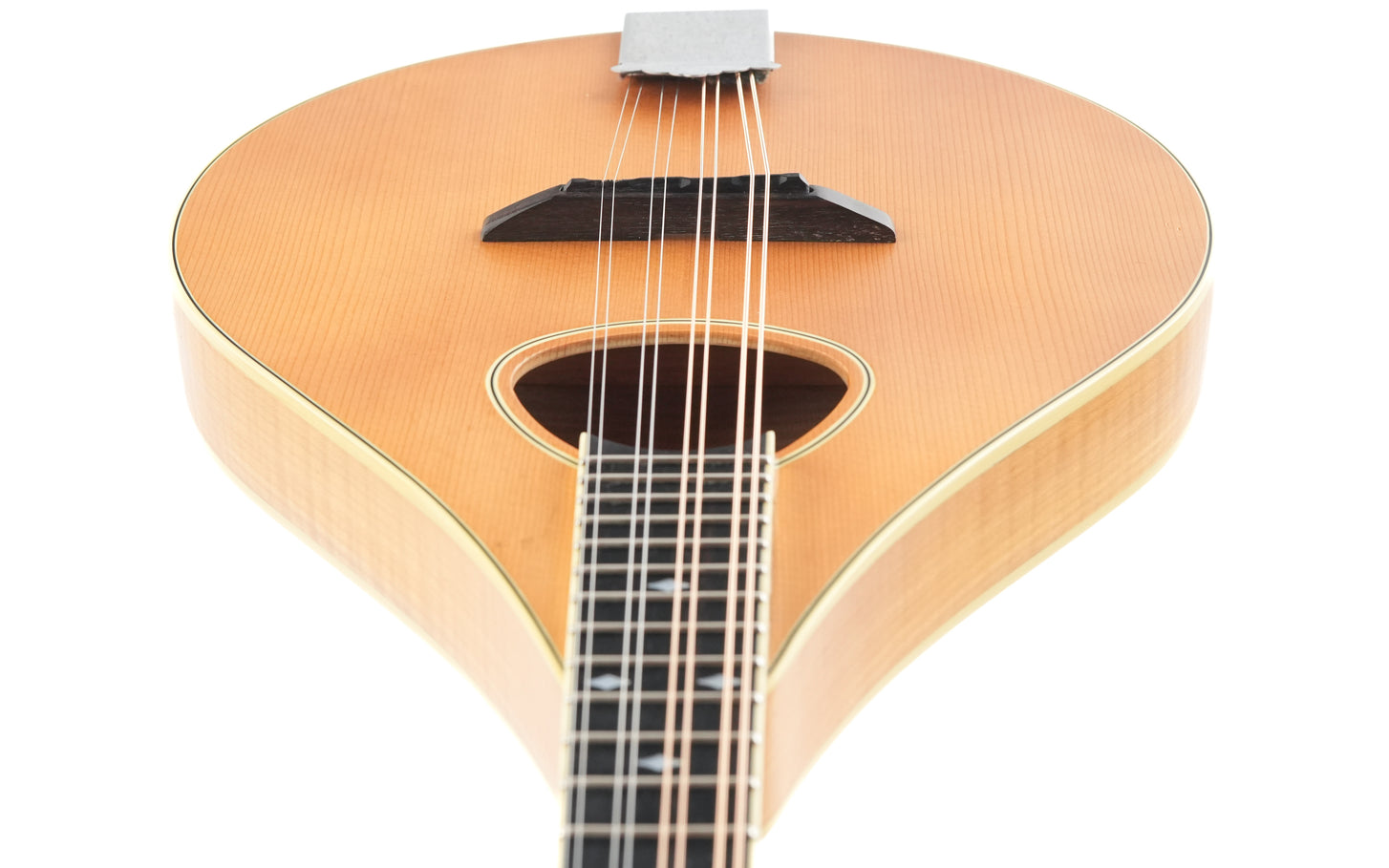 This 1998 Weber Aspen #2 is a beautiful example of the craftsmanship Bruce Weber is known for!With its classic flattop A-style design, this mandolin offers a perfect balance of playing comfort and rich, balanced tone. The solid flat spruce top, combined with solid flamed maple sides and back, creates a bright, sparkling tone with surprising projection and volume, a combination that appeals to bluegrass and folk musicians alike.The finish of this instrument is evidence of why Weber mandolins are so highly regarded by connoisseurs. The ivoroid binding with black and white purfling, the ebony fingerboard with mother-of-pearl diamond inlays and the ebony headstock overlay give this mandolin a refined look. The comfortable V-shaped maple neck profile and flat ebony fingerboard provide excellent playability, while the open tuners further enhance the vintage charm.This Weber mandolin has collected light playwear, with some very small dings on the top and back of the body. The mandolin is in excellent condition and comes with a hardshell case and TFOA passport.