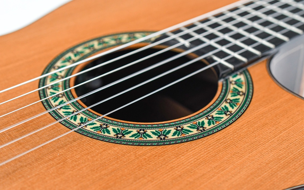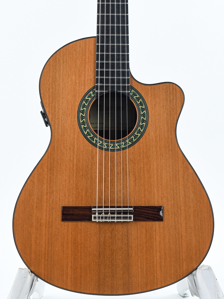Met een iets smaller halsprofiel van iets meer dan 50 mm bij de topkam en de flexibiliteit van het massieve ceder bovenblad heeft dit instrument de veelzijdigheid sound, zowel versterkt als akoestisch. Hij heeft een ingebouwde Fishman pickup die naar wens van de artiest instelbaar is via een zorgvuldig geplaatst Fishman voorversterkersysteem.