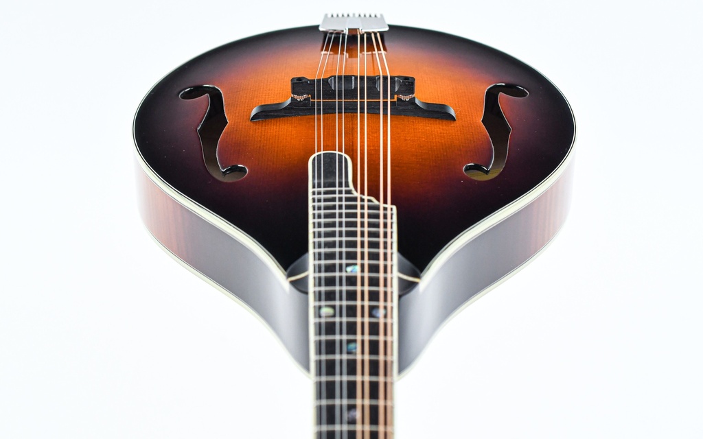 This MD805 is built with solid Adirondack top, solid maple back and sides, ebony fingerboard and adjustable ebony bridge. The A-style body with F-holes provide warm, ringing tones and excellent sound projection.
